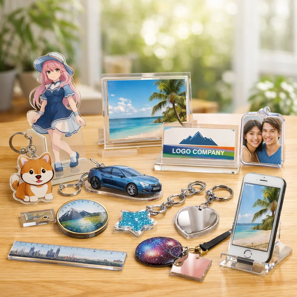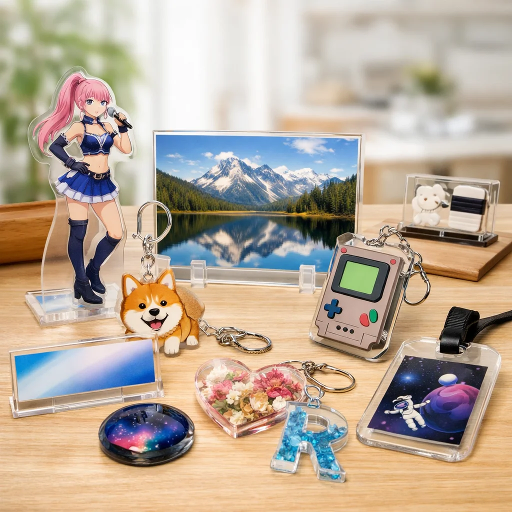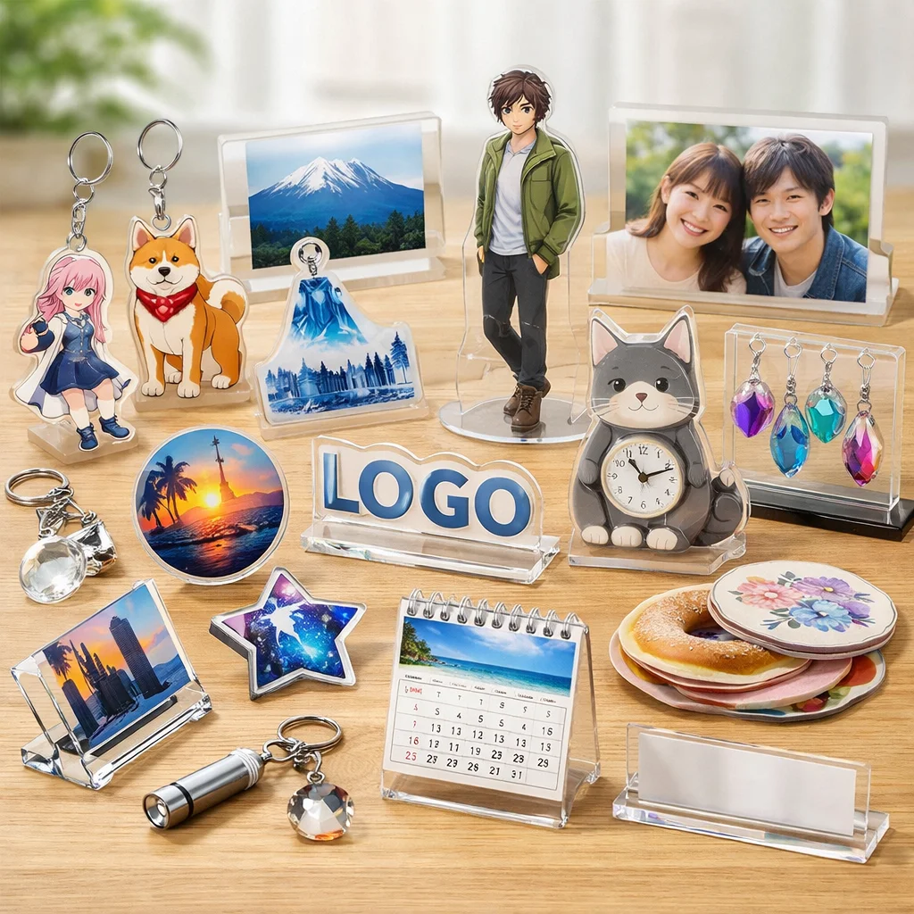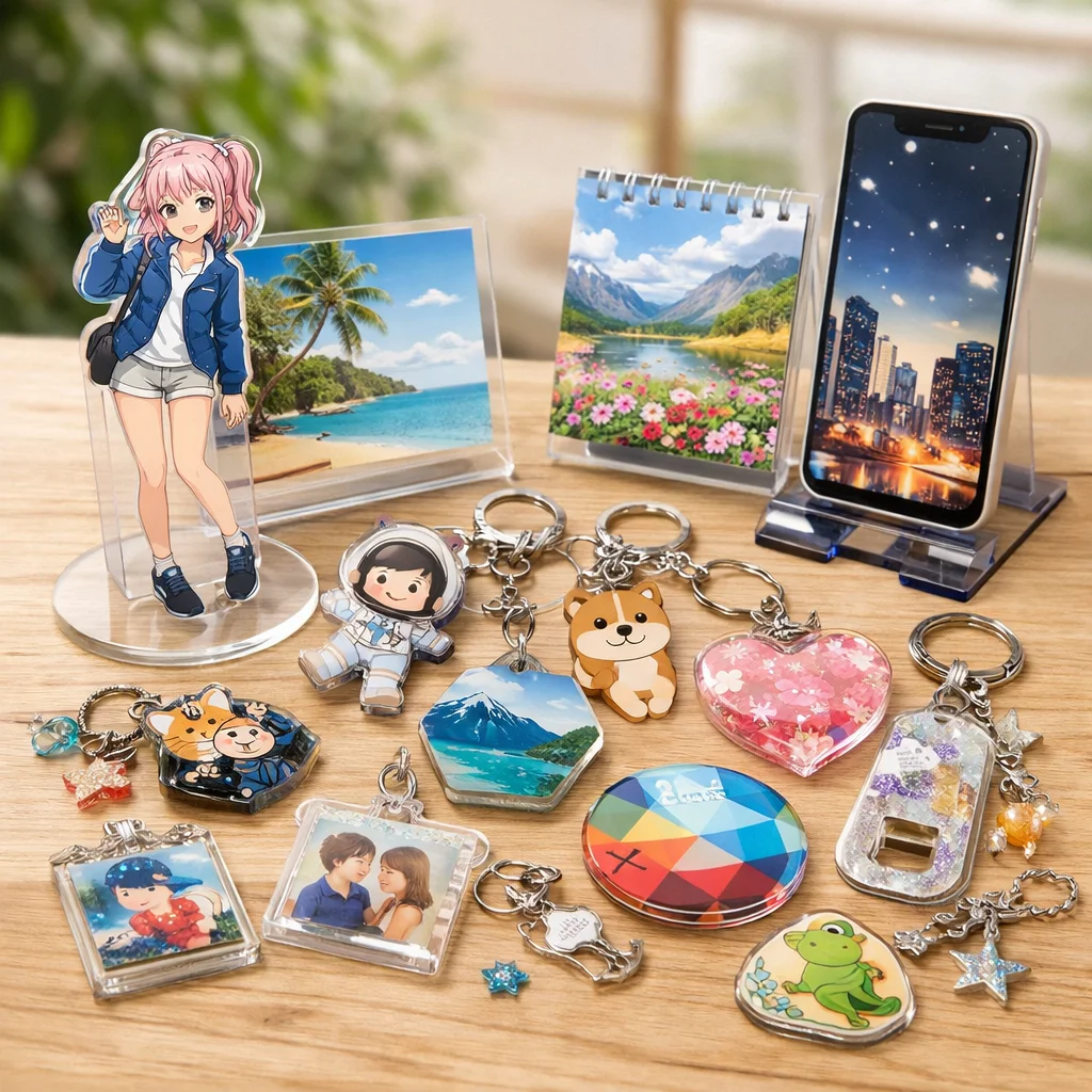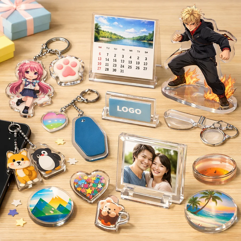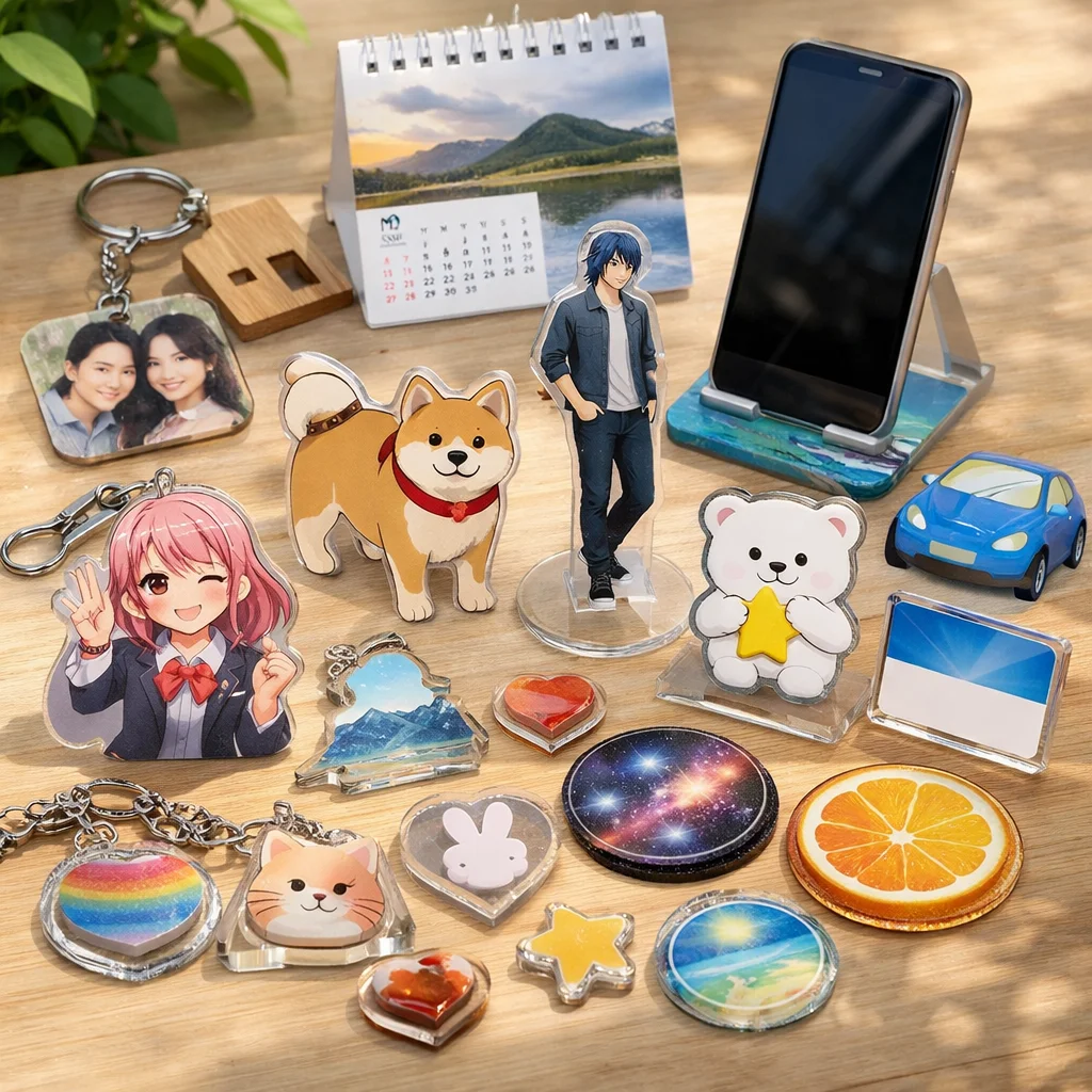 アクリルグッズの魅力は、その多様性にあります。商品カテゴリとして、キーホルダー、スタンド、プレートなど、さまざまな形状やデザインが可能です。これにより、企業のロゴやキャラクターをアクリルグッズに落とし込むことで、ノベルティとしての効果を最大化できます。