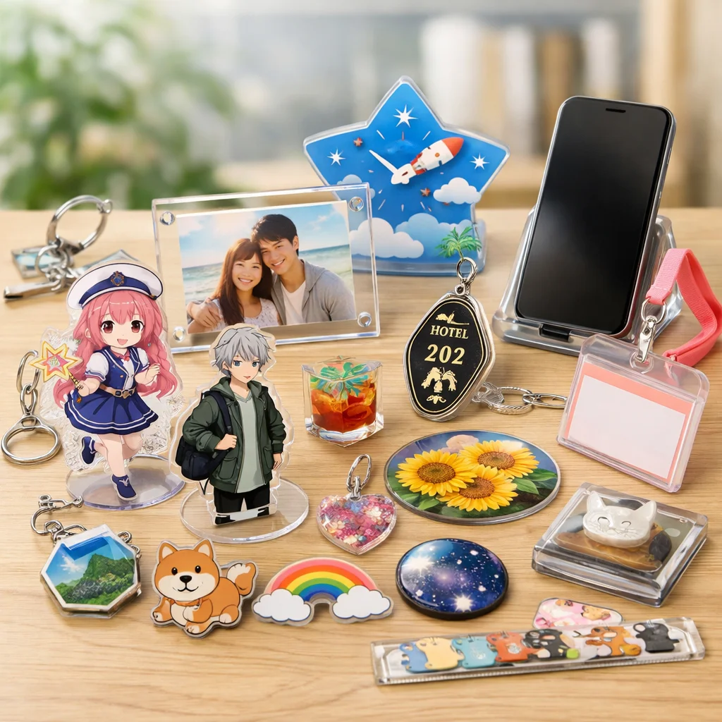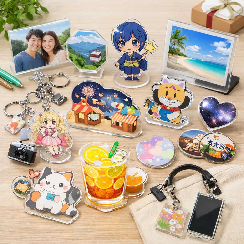 アクリルグッズのノベルティとしての活用は、企業のブランディングや販促活動において非常に効果的です。その多様性とカスタマイズ性により、商品カテゴリとしての可能性は無限大です。展示会、採用活動、店舗の販促、ECサイトの特典など、さまざまなシーンでアクリルグッズを活用し、企業の魅力を伝えてみてはいかがでしょうか。