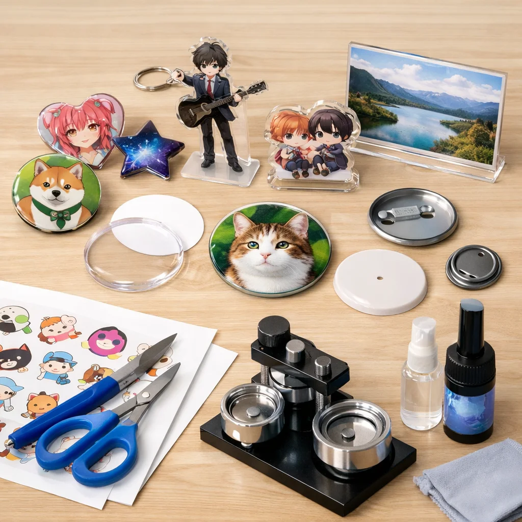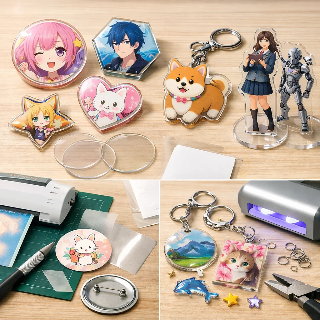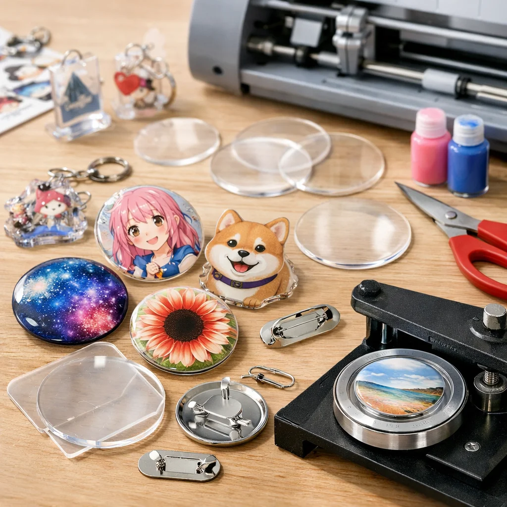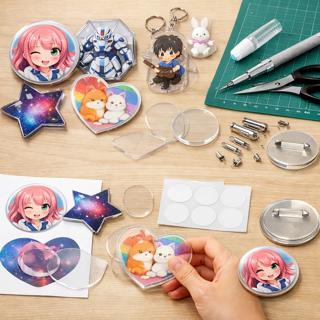 アクリルグッズのバッジ制作は、クリエイティブな楽しみが詰まった作業ですが、正しい材料と道具を使うことで、仕上がりの質が大きく変わります。ここでは、バッジ制作に必要な「最低限セット」と「あると仕上がりが上がる道具」に分けて、各アイテムの役割や選ぶ基準、代替案を詳しく説明します。これを参考にすれば、初心者でも自信を持って アクリルグッズ を作成できるでしょう。