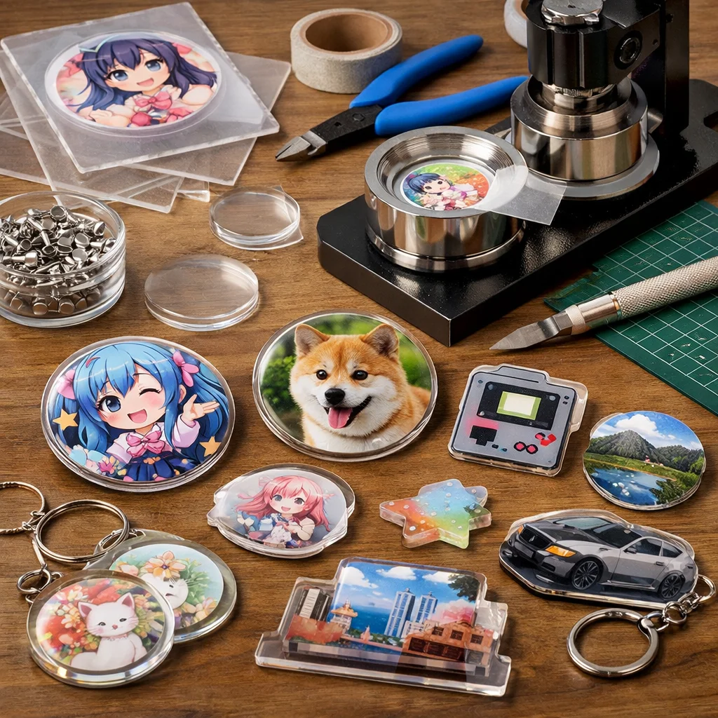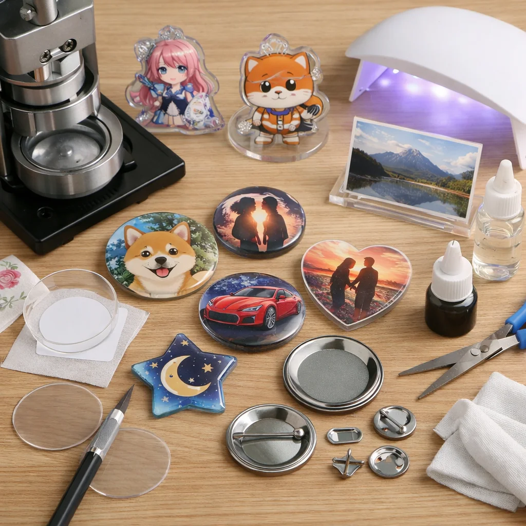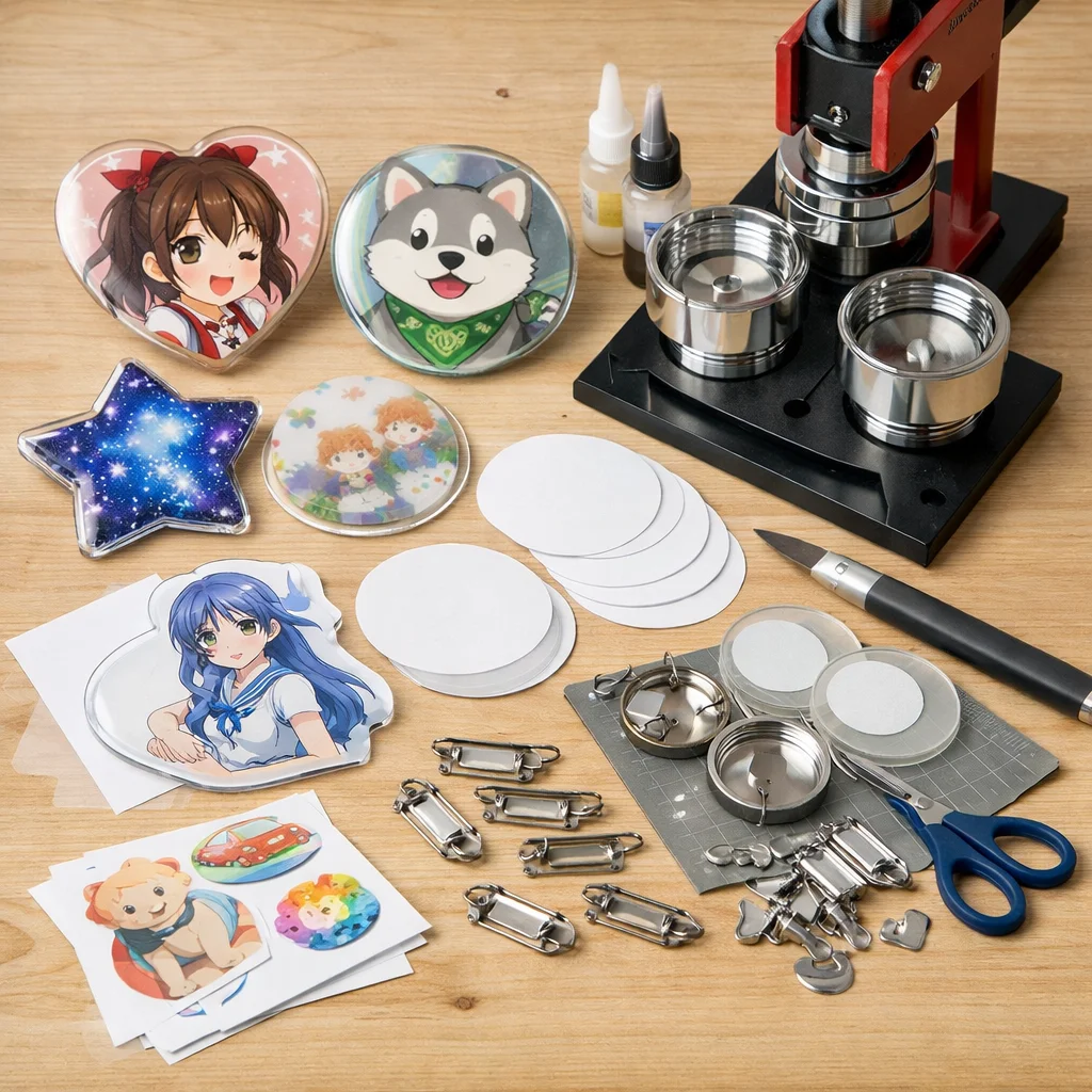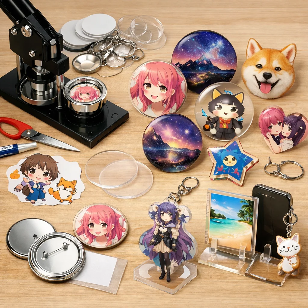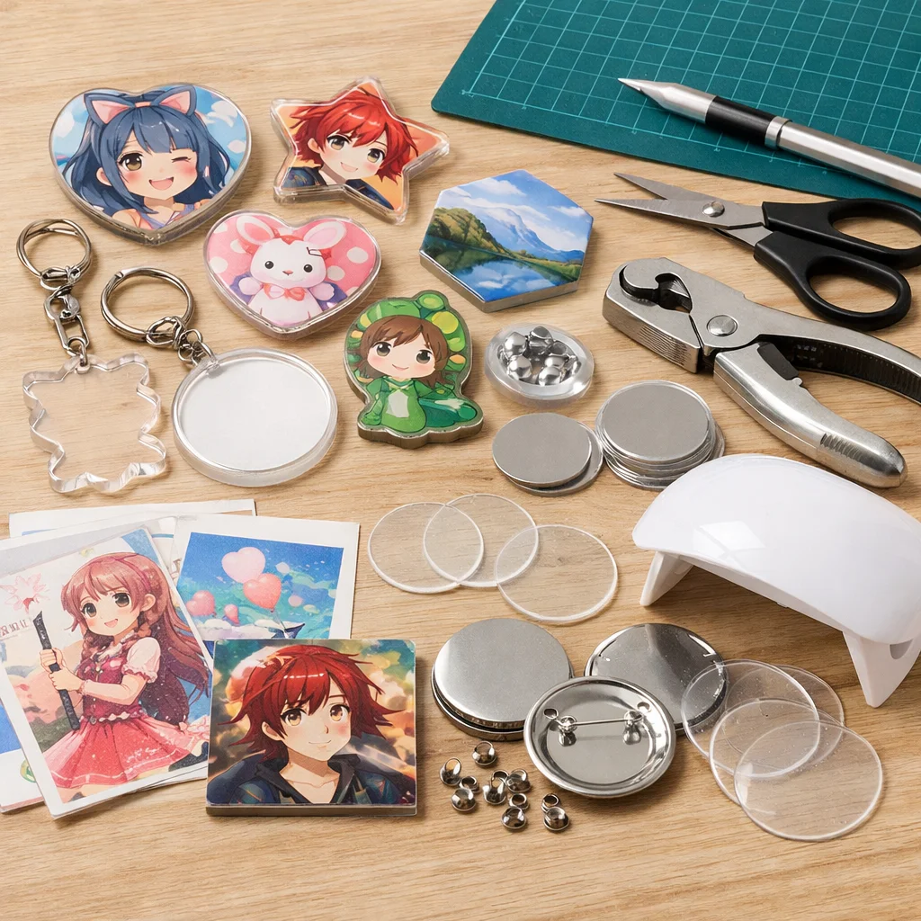 アクリルグッズのバッジ制作は、クリエイティブな楽しみが詰まった作業ですが、正しい材料と道具を使うことで、仕上がりの質が大きく変わります。ここでは、バッジ制作に必要な「最低限セット」と「あると仕上がりが上がる道具」に分けて、各アイテムの役割や選ぶ基準、代替案を詳しく説明します。これを参考にすれば、初心者でも自信を持って アクリルグッズ を作成できるでしょう。