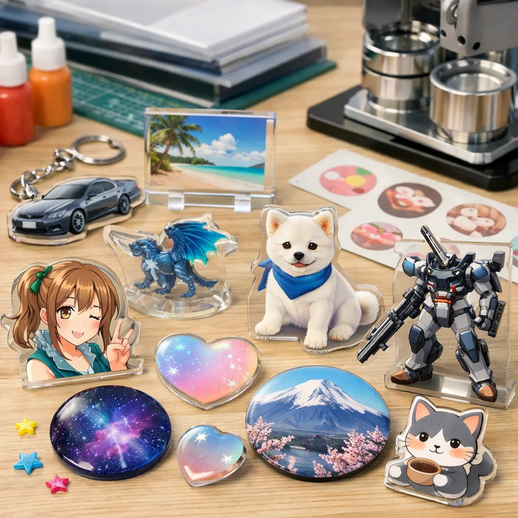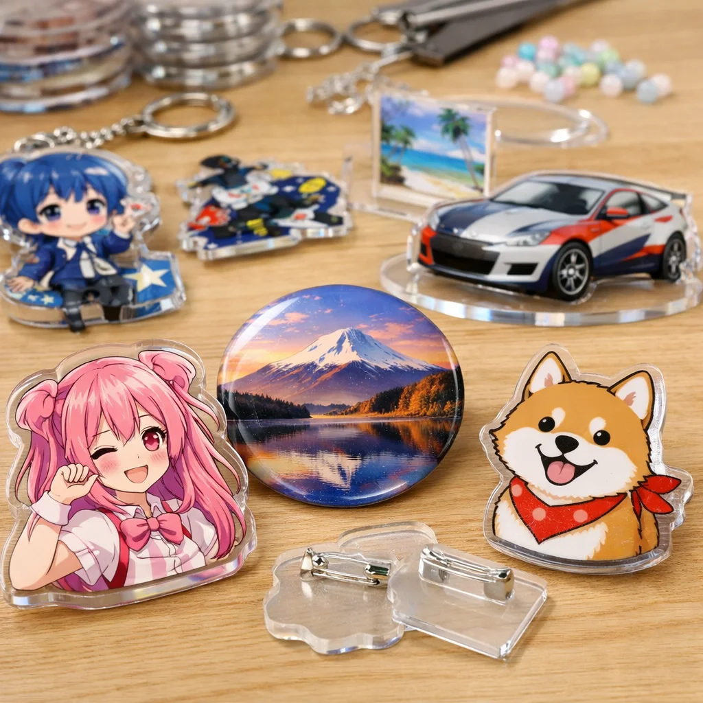 アクリルグッズのバッジ制作は、豊かな表現力と多様な用途が魅力です。アクリルの特性を活かすことで、オリジナルデザインのバッジを楽しんでいただけます。また、ビジネスや趣味での展開にもぴったりな商品ですので、ぜひこの機会に制作に挑戦してみてください。