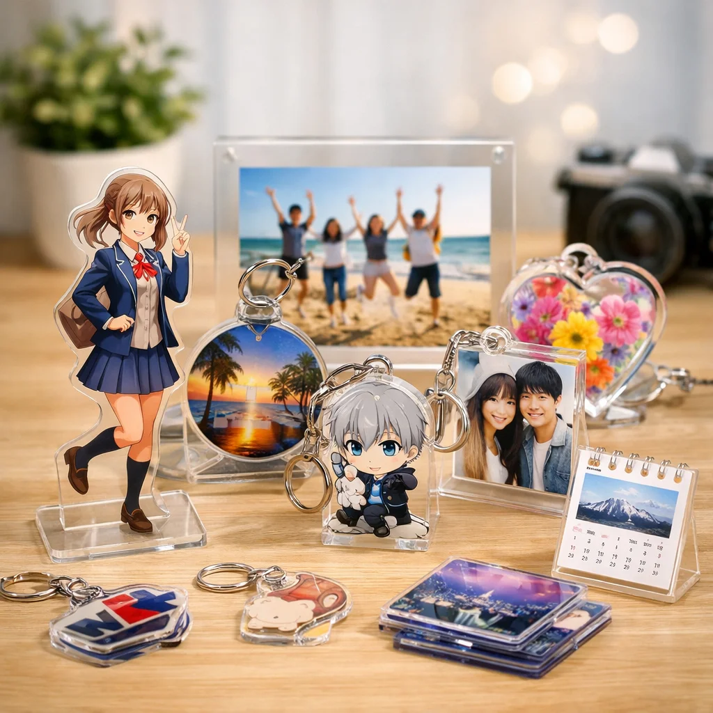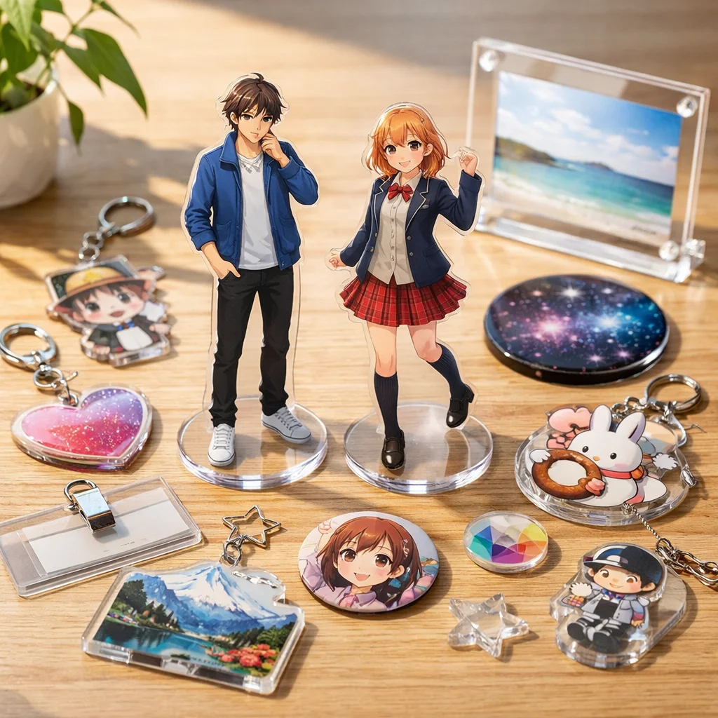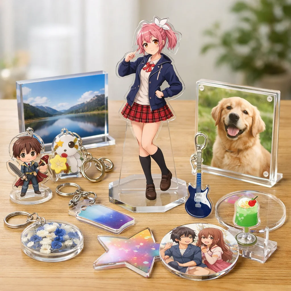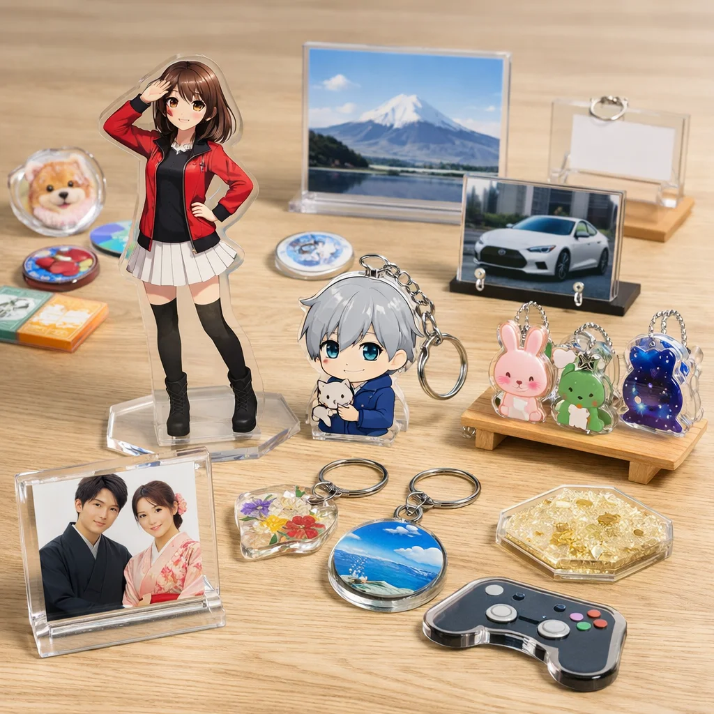 アクスタはアクリル製のスタンド型アイテムで、透明感や耐久性、印刷の美しさが特徴です。個々の用途に合わせた制作が可能で、ファンにとっては魅力的なアクリルグッズです。制作前に用途・予算・数量を確認することが大切です。