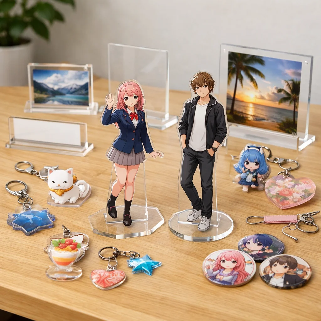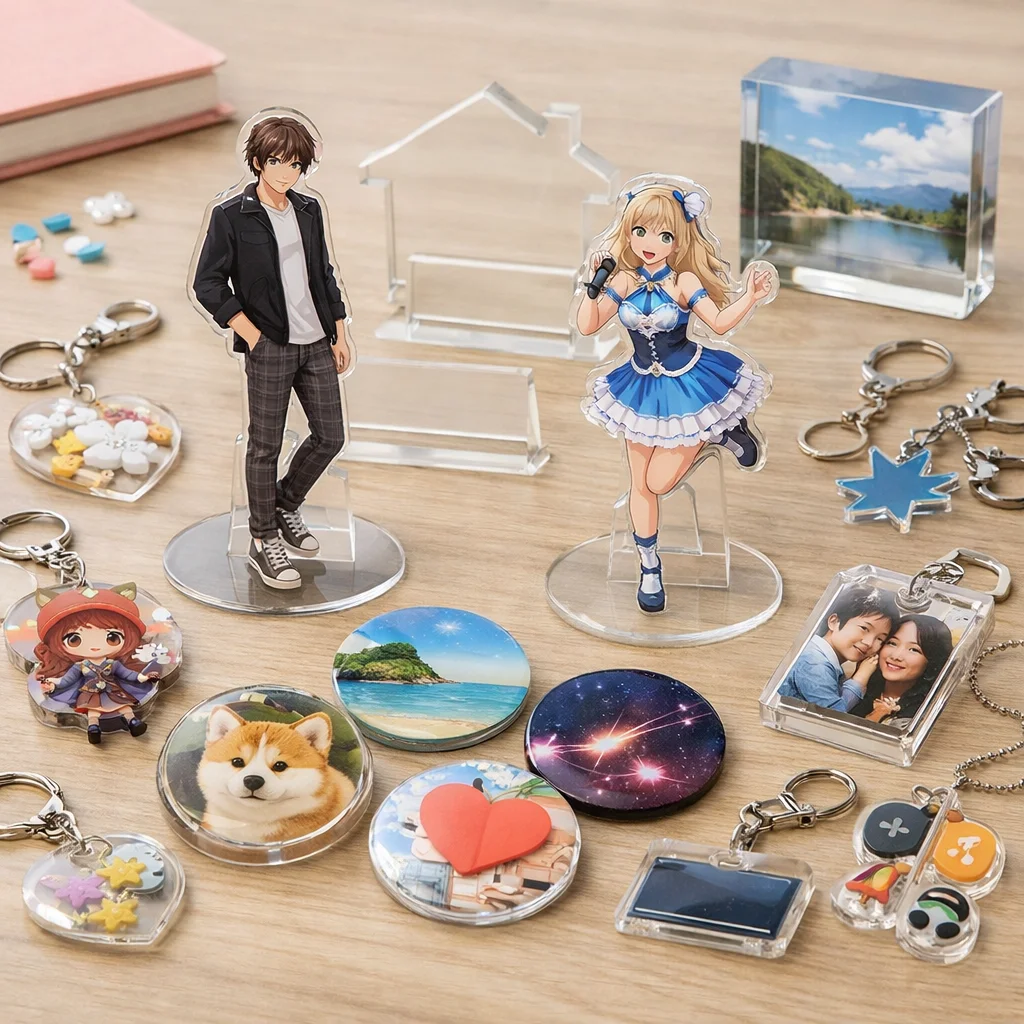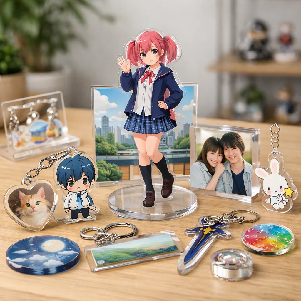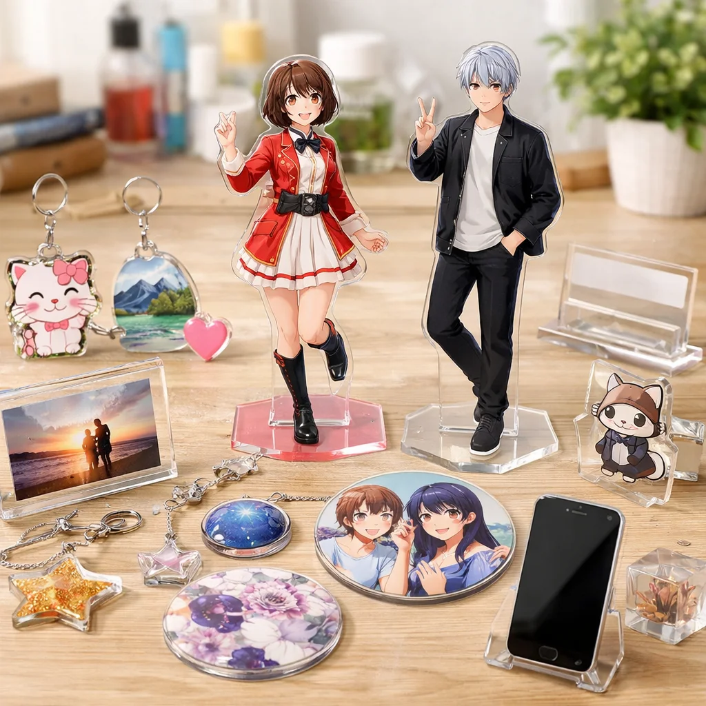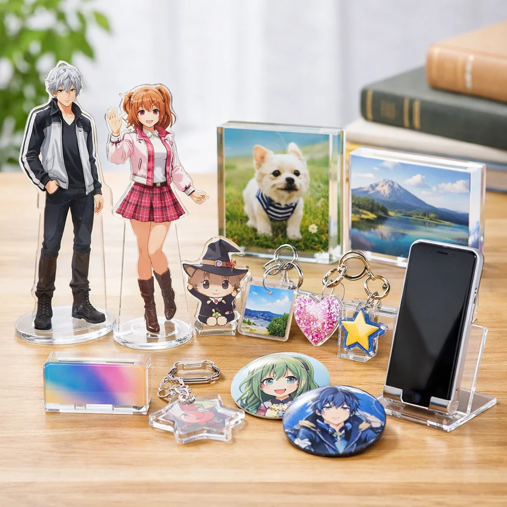アクスタはアクリル製のスタンド型アイテムで、透明感や耐久性、印刷の美しさが特徴です。個々の用途に合わせた制作が可能で、ファンにとっては魅力的なアクリルグッズです。制作前に用途・予算・数量を確認することが大切です。