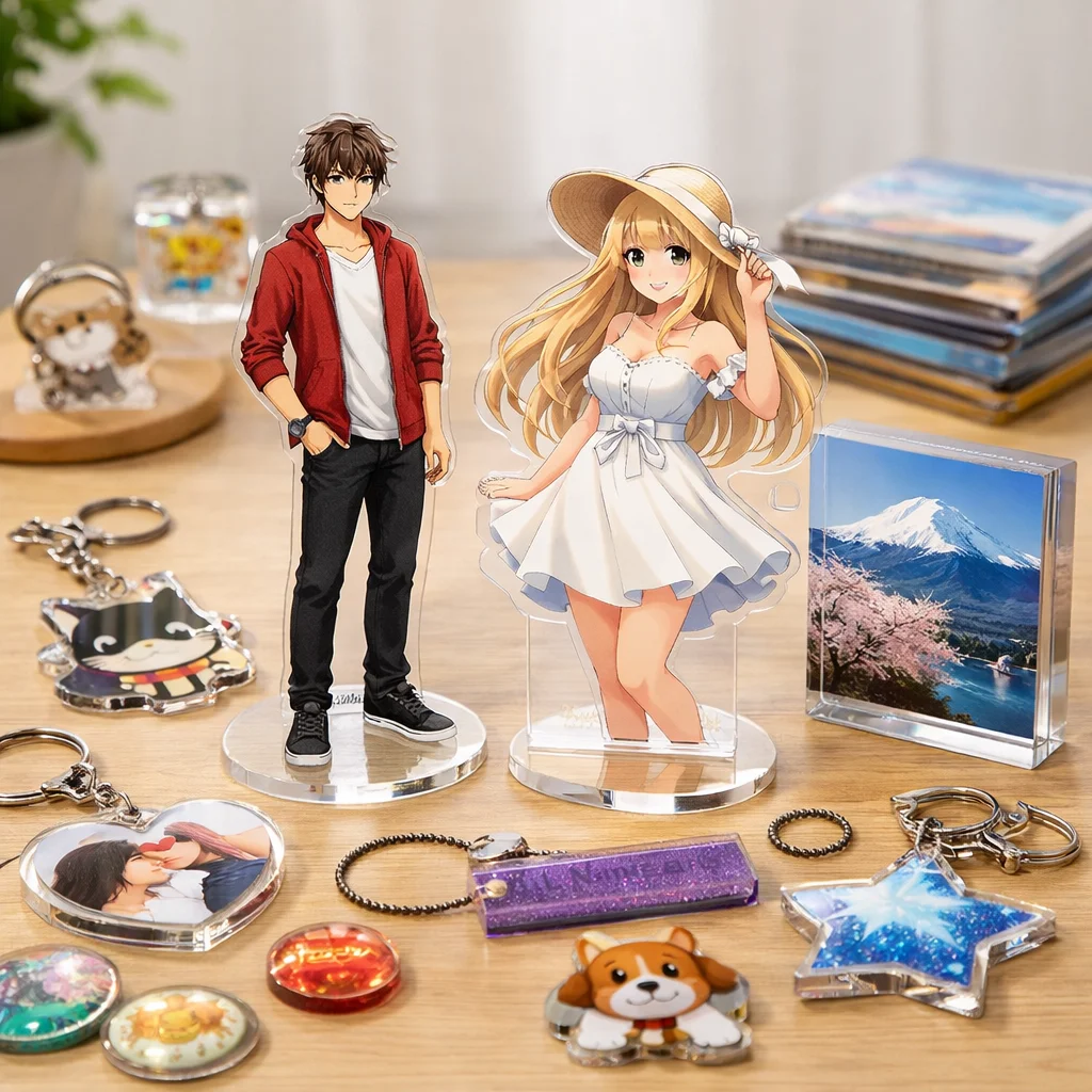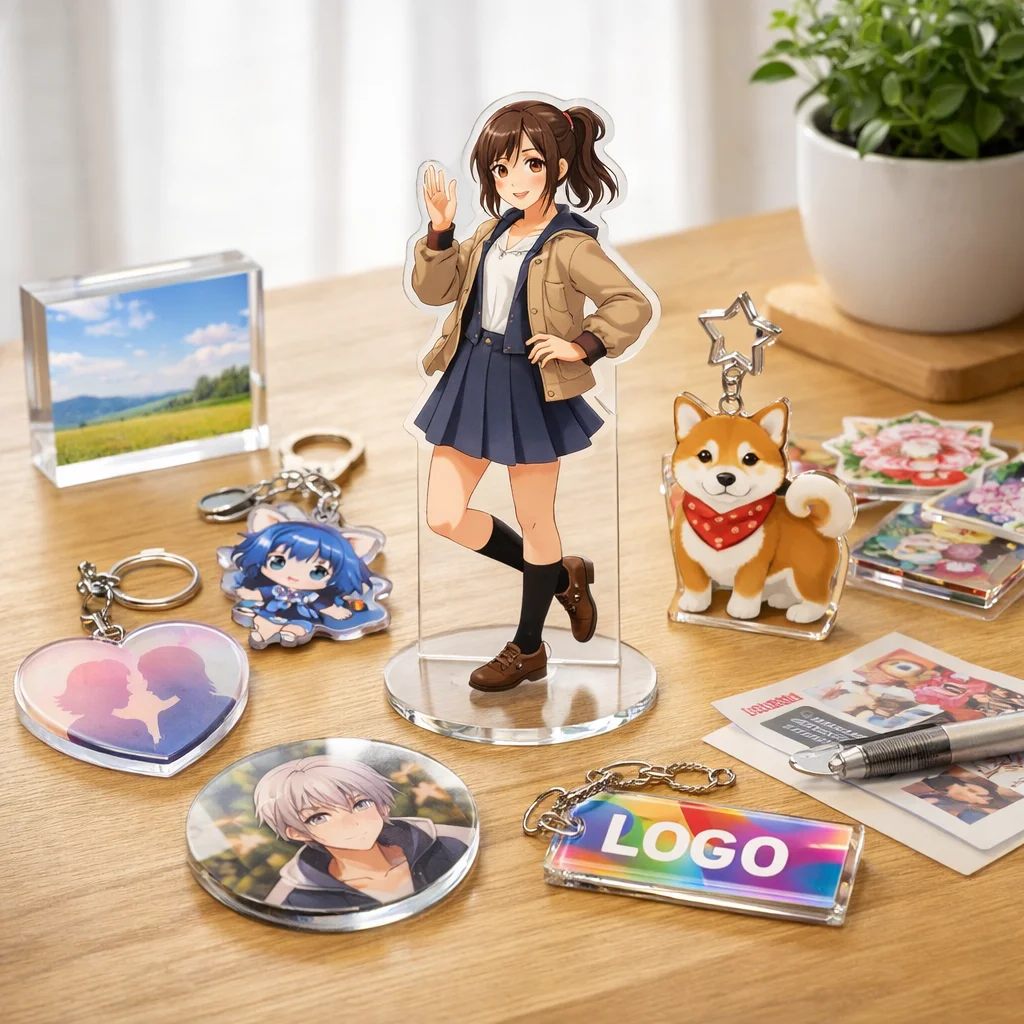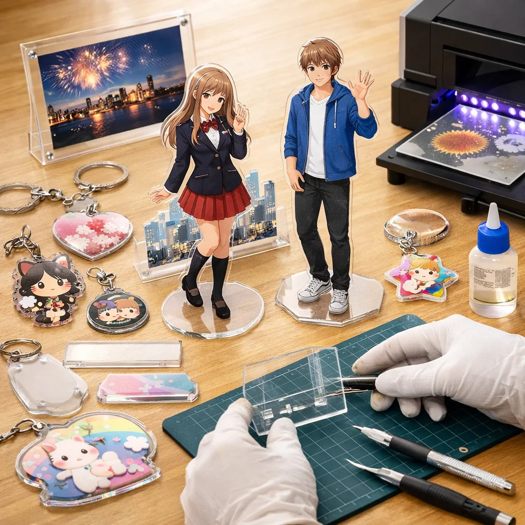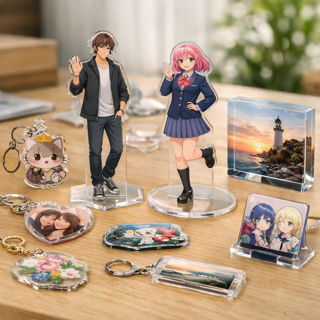 アクスタはアクリル製のスタンド型アイテムで、透明感や耐久性、印刷の美しさが特徴です。個々の用途に合わせた制作が可能で、ファンにとっては魅力的なアクリルグッズです。制作前に用途・予算・数量を確認することが大切です。