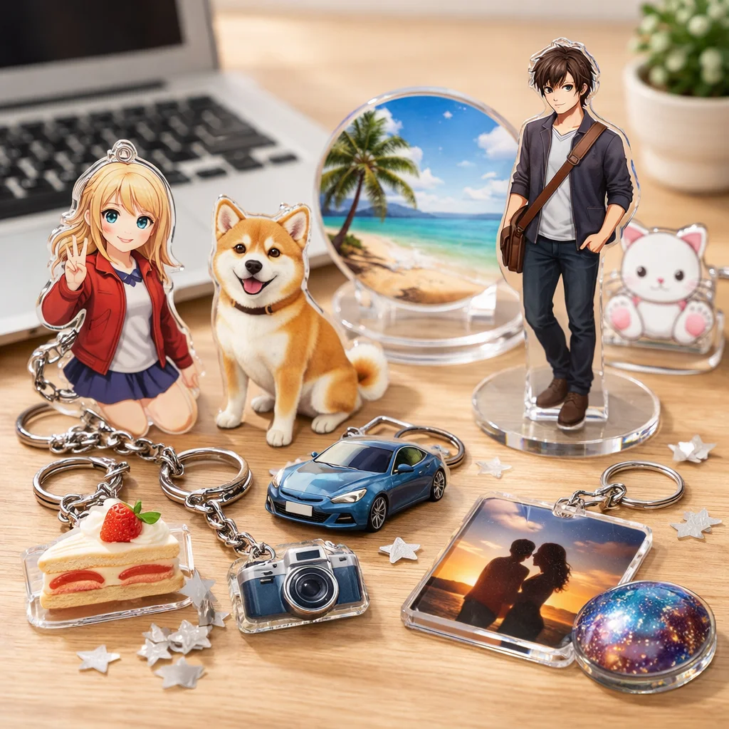 日常や特別な場面にピッタリなアクリルグッズのキーホルダーをぜひ注文してみてください。多様な選択肢から、自分だけのデザインを楽しむことができるでしょう。