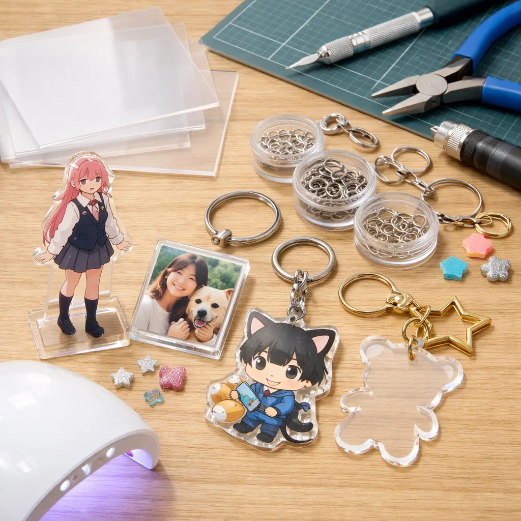 さらに、アクリルグッズキーホルダーを更に安く、また便利に作成する方法についても考慮してみましょう。DIYキットや既製のパーツを組み合わせることで、コストを抑えつつもユニークなデザインが可能です。100円ショップなどで手に入る素材を利用することで、個性的なキーホルダーをリーズナブルに実現でき、特にカスタマイズ性やオリジナリティを重視する方にはおすすめです。集めたパーツを使って、自分だけのデザインを試行錯誤しながら作り方を楽しむことができます。