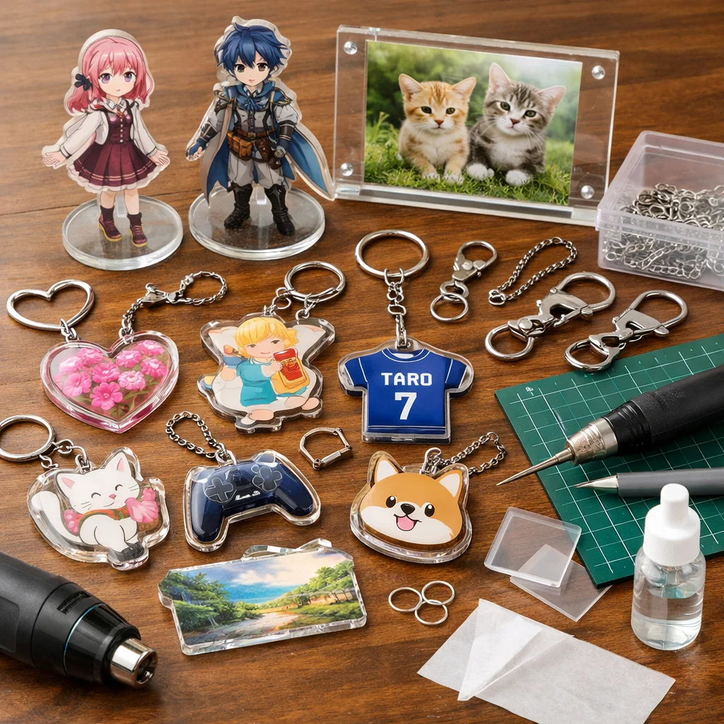 自分だけのオリジナル**アクリルグッズ**、特に**キーホルダー**を制作するアイデアが紹介されています。推し活や旅の思い出を形にし、コレクション性を高める工夫や業者発注の方法についても触れます。