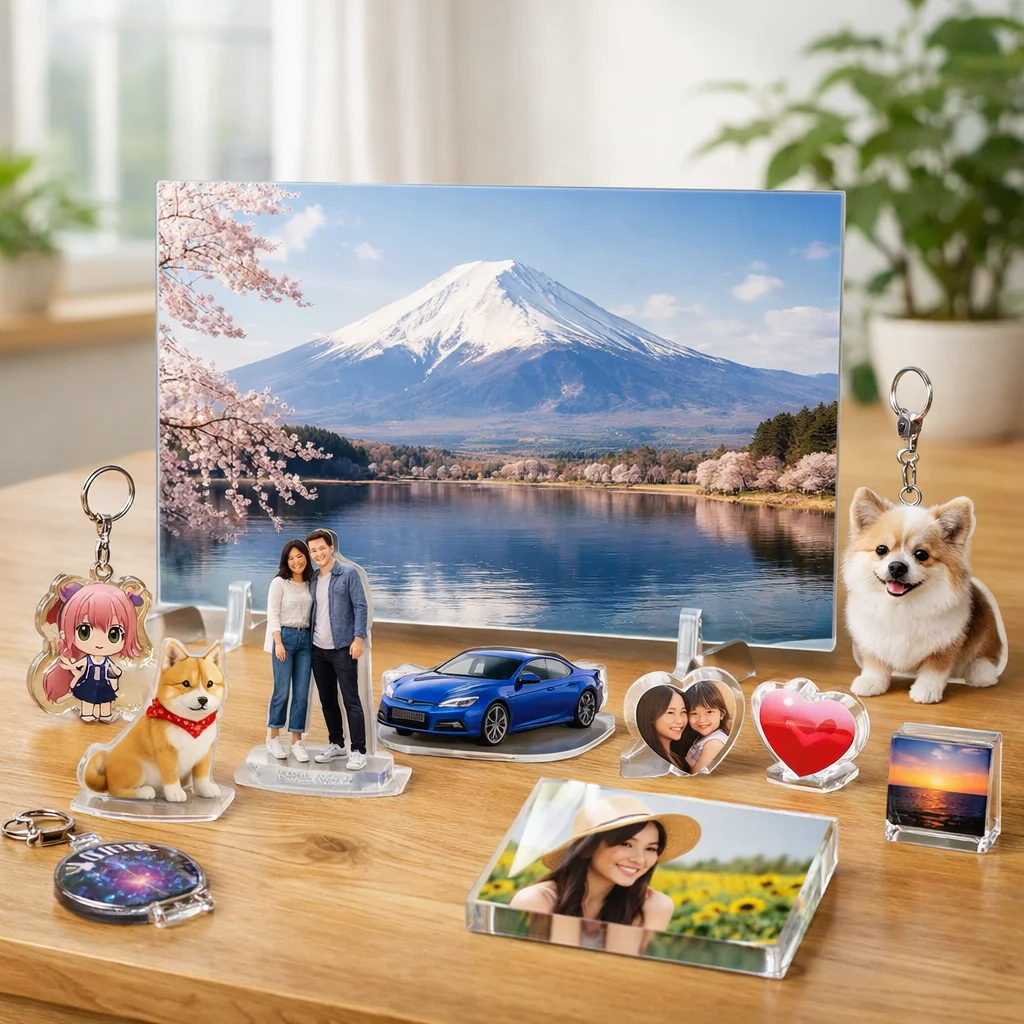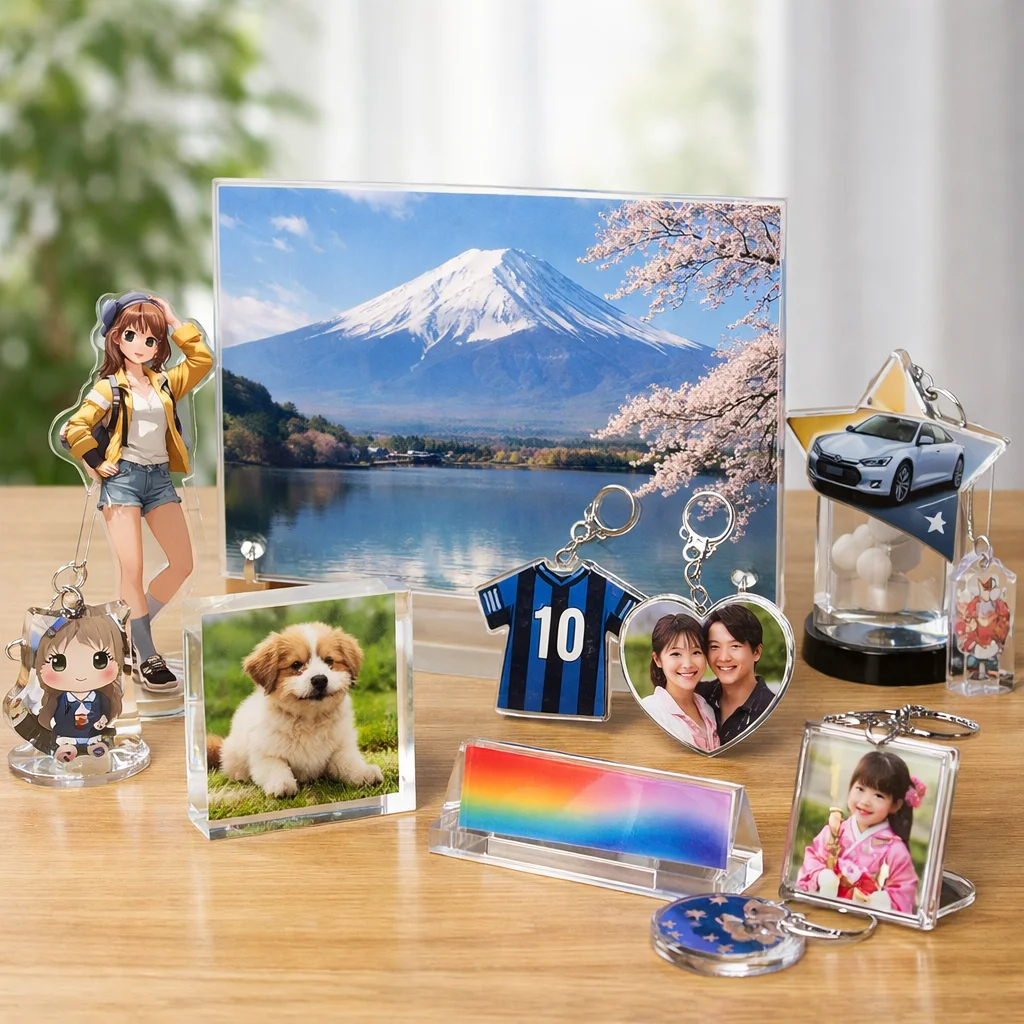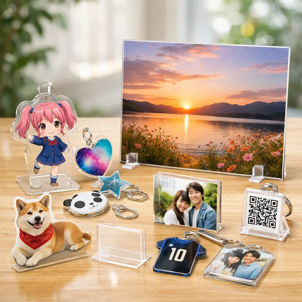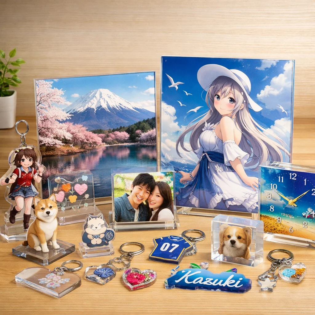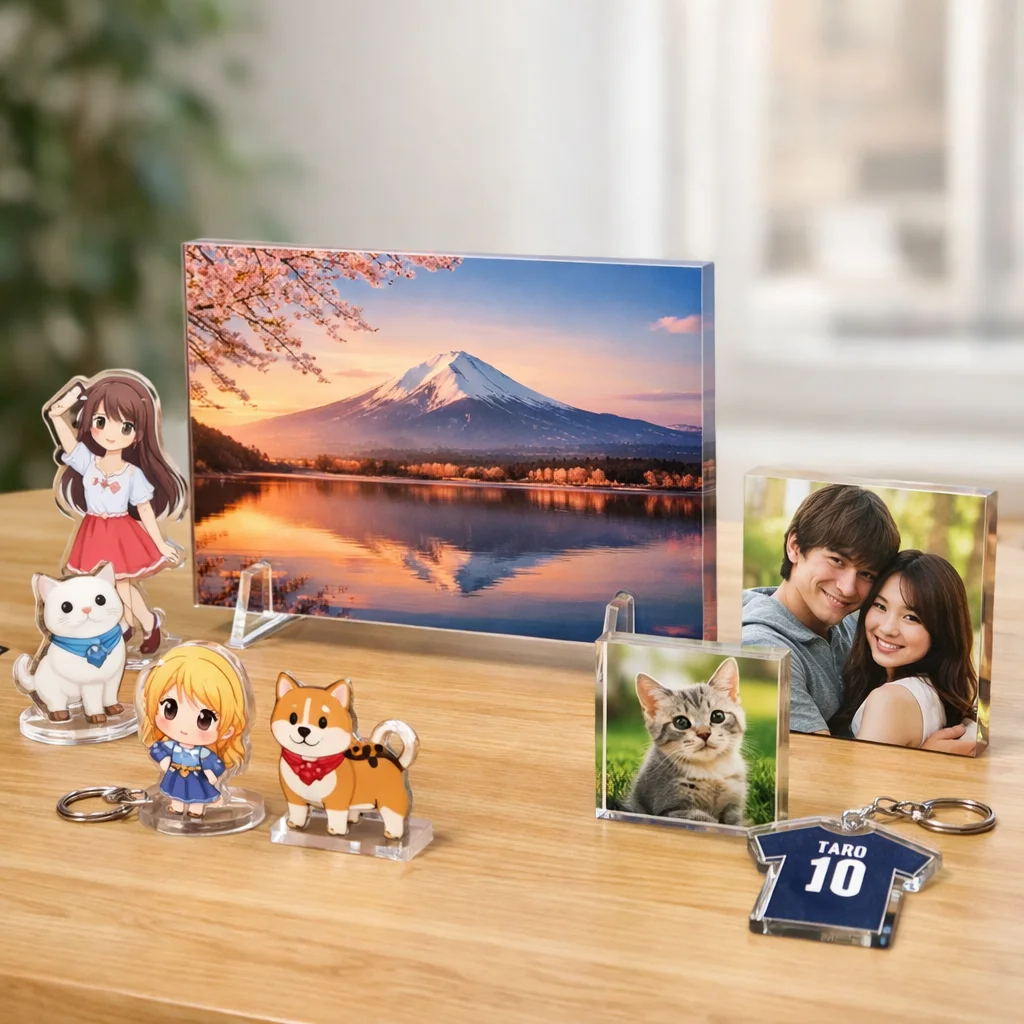 以上のように、アクリルパネルはその透明感、発色の良さ、耐久性、飾りやすさ、ギフト適性、および小ロット対応によって、多くの人々に支持されています。アクリルパネルが持つ魅力を活かして、あなたもぜひ自分だけの特別なアクリルグッズを手に入れてみてください。