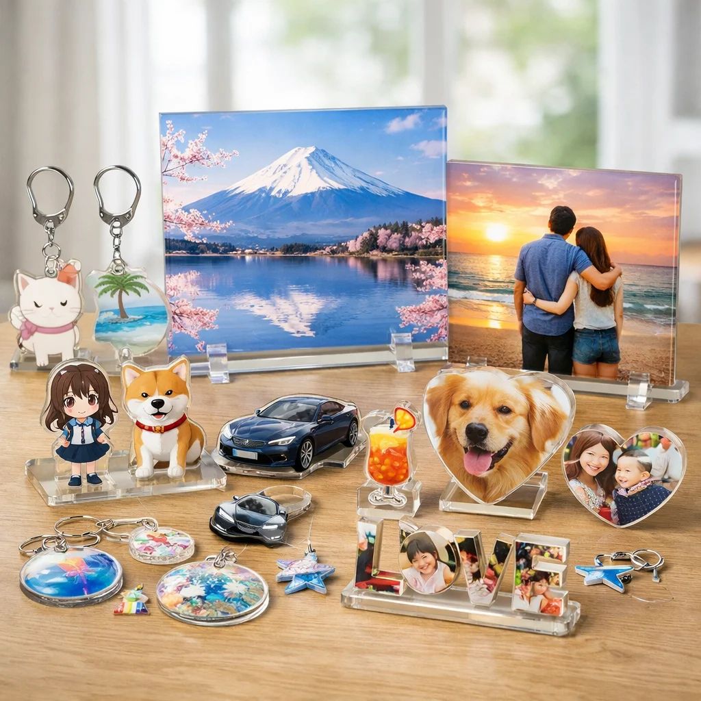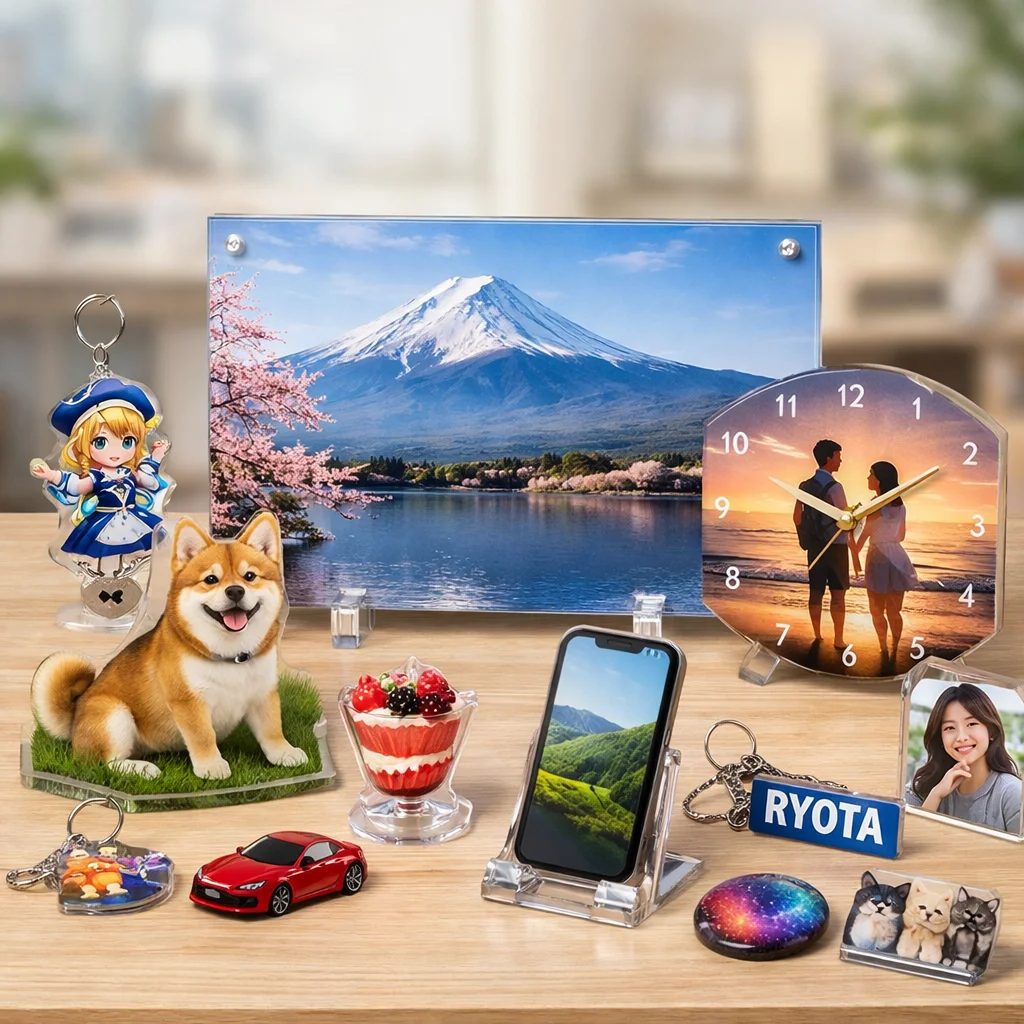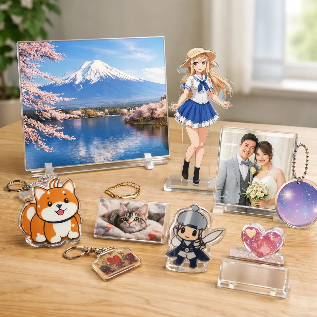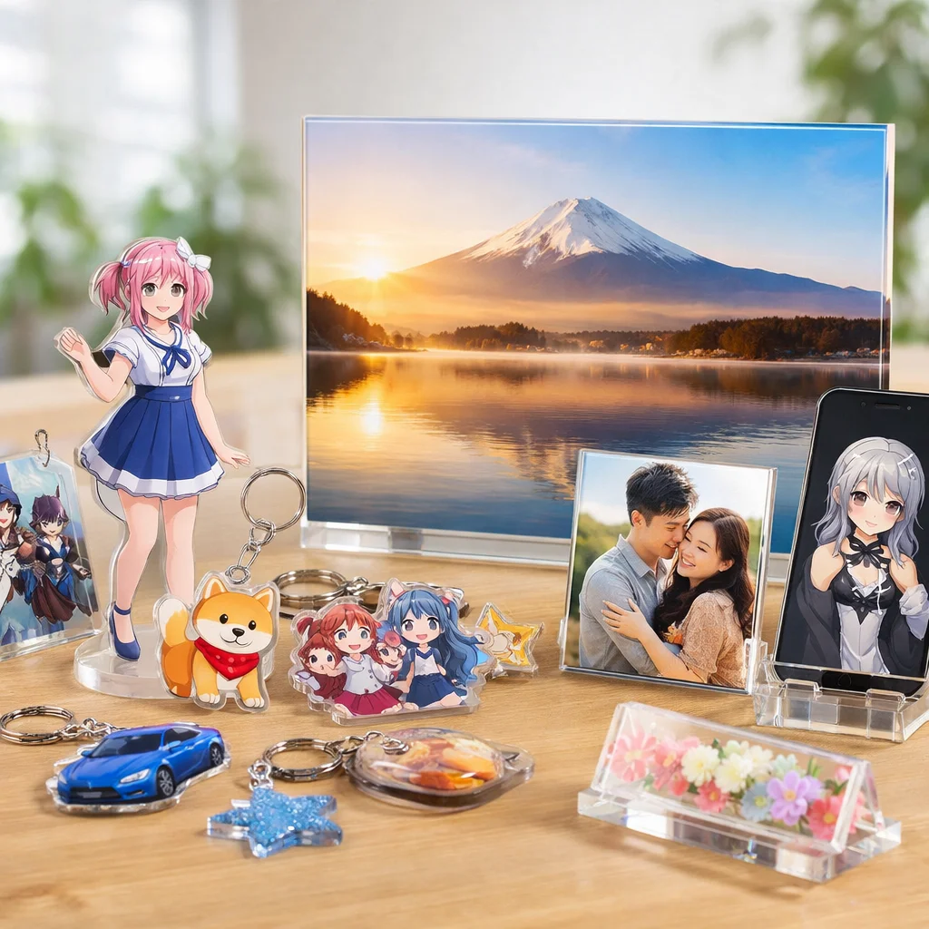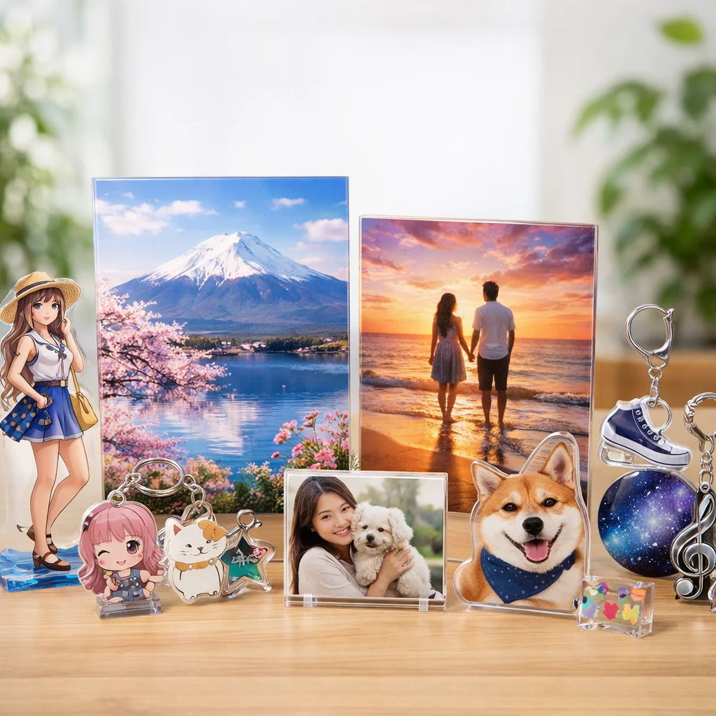 以上のように、アクリルパネルはその透明感、発色の良さ、耐久性、飾りやすさ、ギフト適性、および小ロット対応によって、多くの人々に支持されています。アクリルパネルが持つ魅力を活かして、あなたもぜひ自分だけの特別なアクリルグッズを手に入れてみてください。