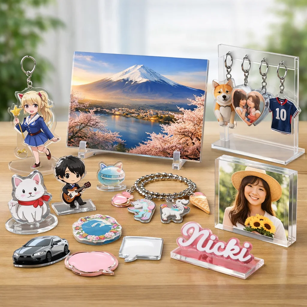 このように、アクリルパネルの形状によって、見た目の印象や制作のしやすさ、さらには向くデザインも異なります。選ぶ際には、用途に応じた正式なアクリルグッズのカテゴリを考慮することが重要です。特に、個人のオーダーの場合、自分にとっての最適な形状を選ぶことが成功の鍵となります。