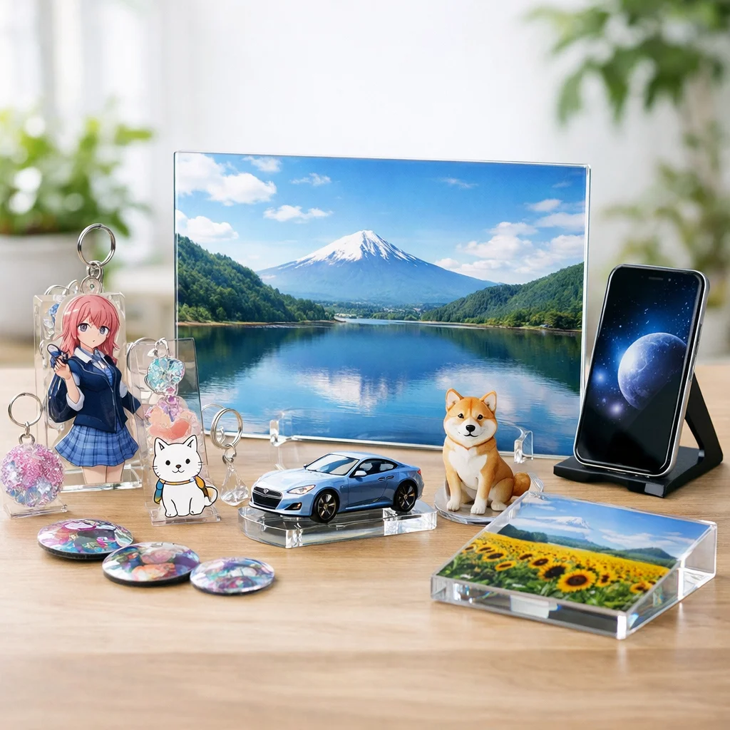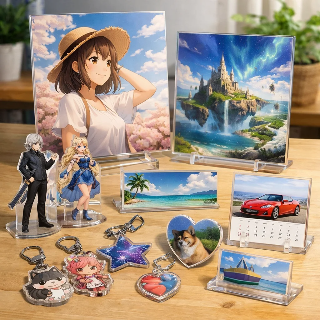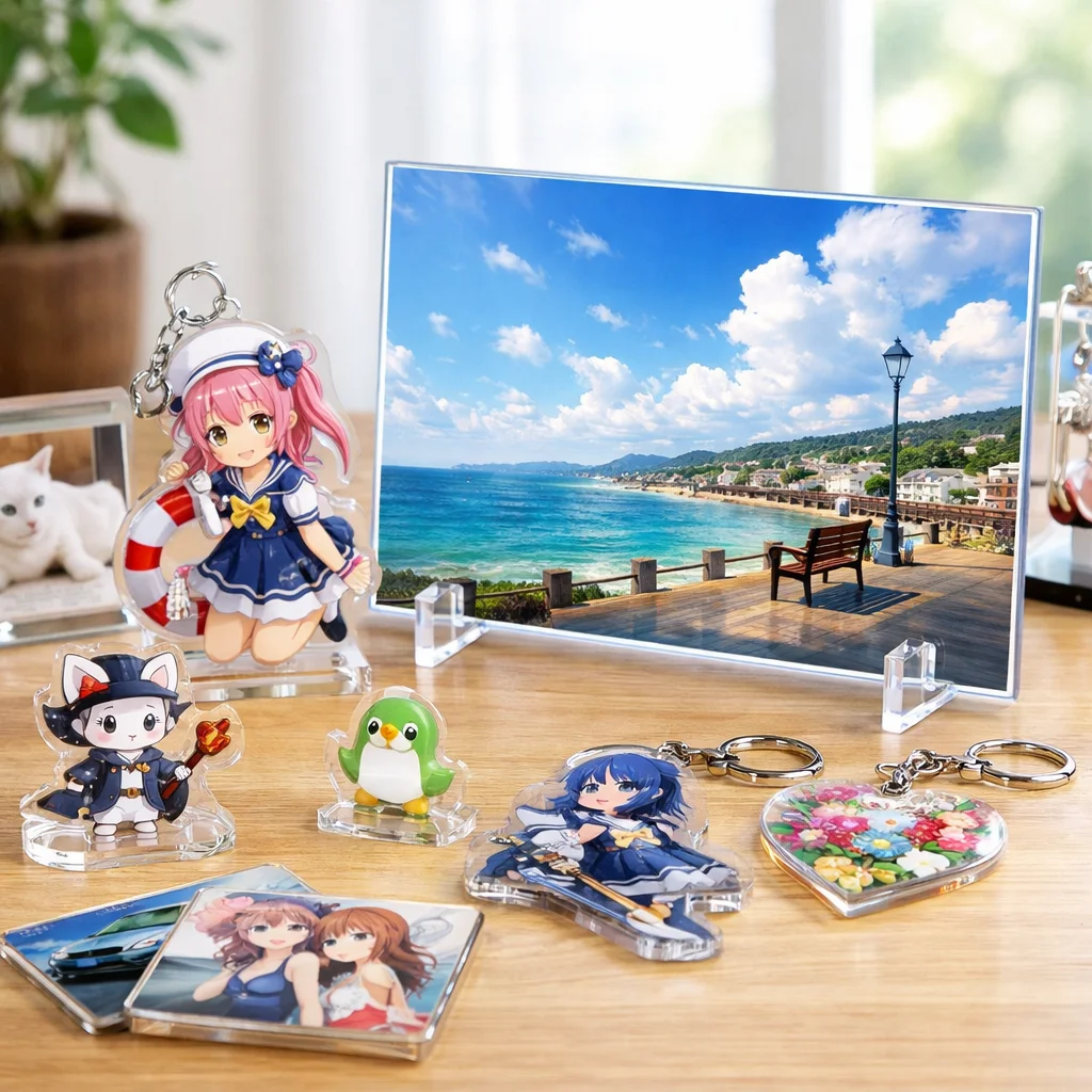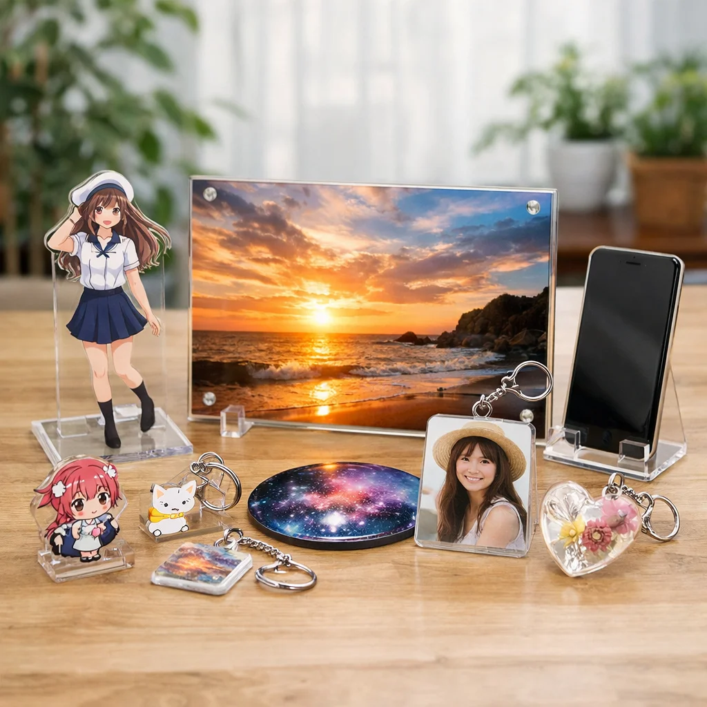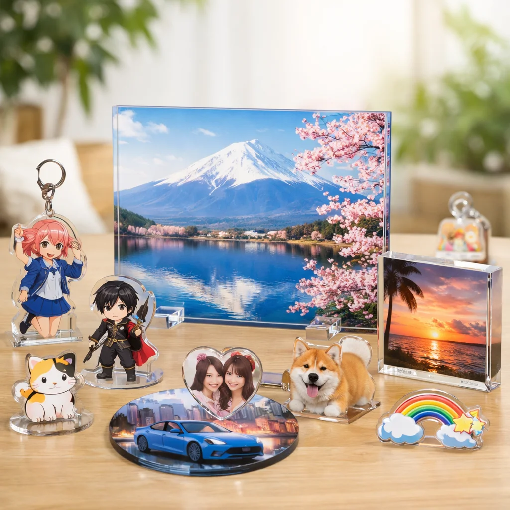 アクリルパネルは、その美しさと機能性から多くの人に愛されています。耐久性や印刷適性を活かして、おしゃれなインテリアやファンアイテムの制作が可能です。アクリルグッズの中でも特に魅力的な選択肢として、ぜひ取り入れてみてください。