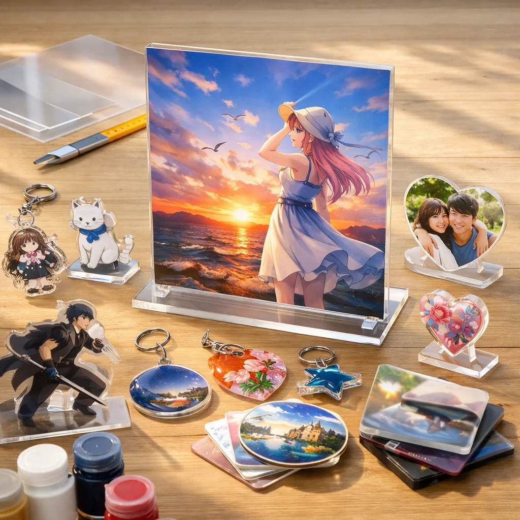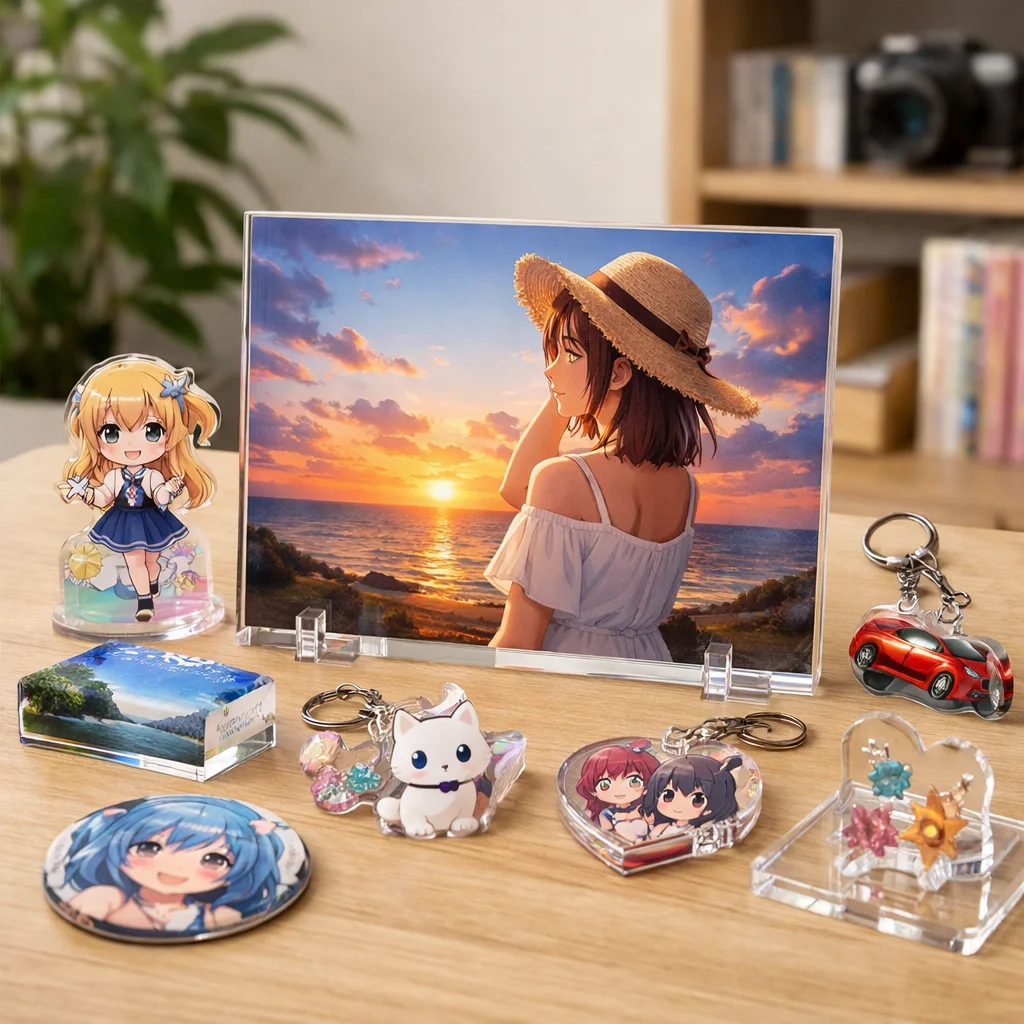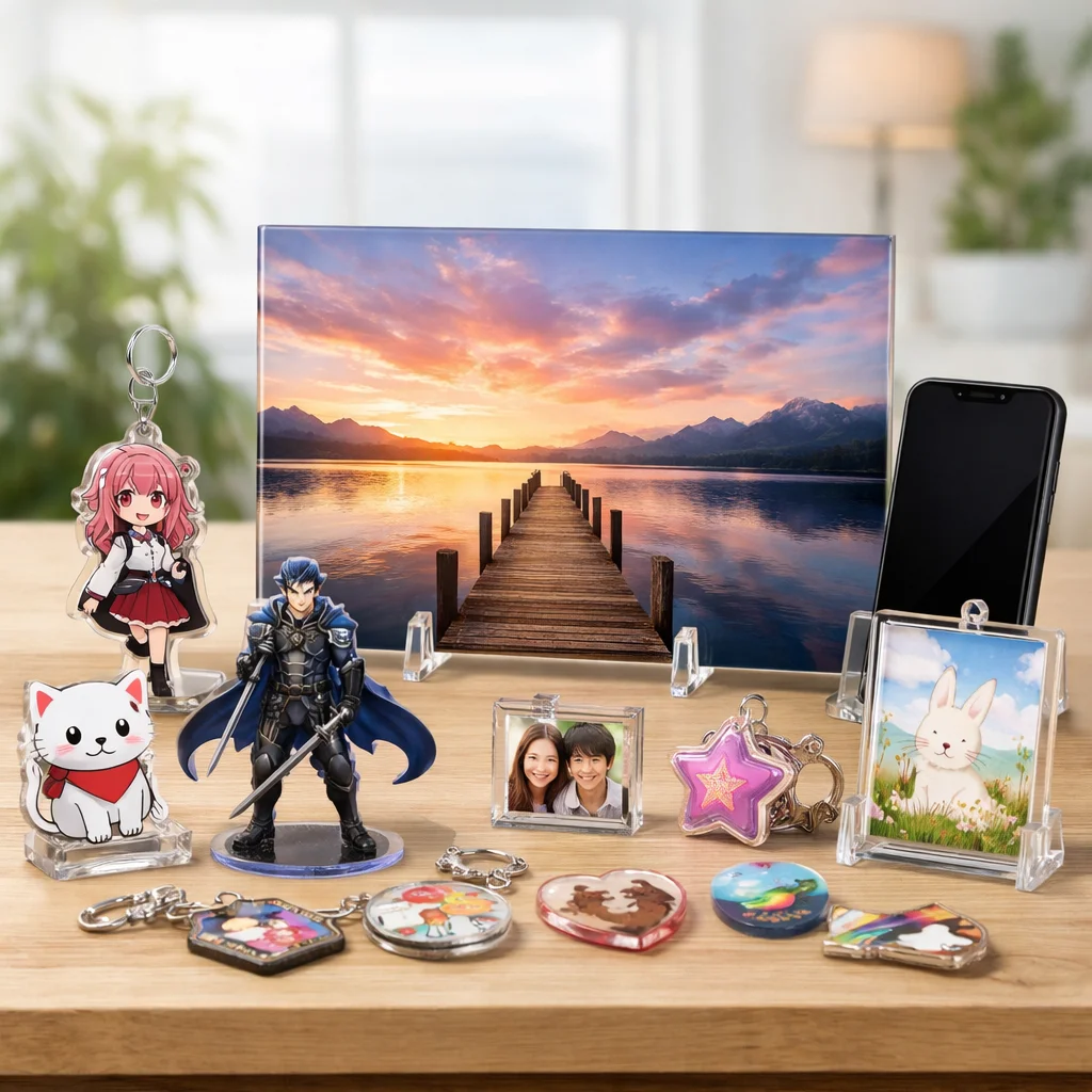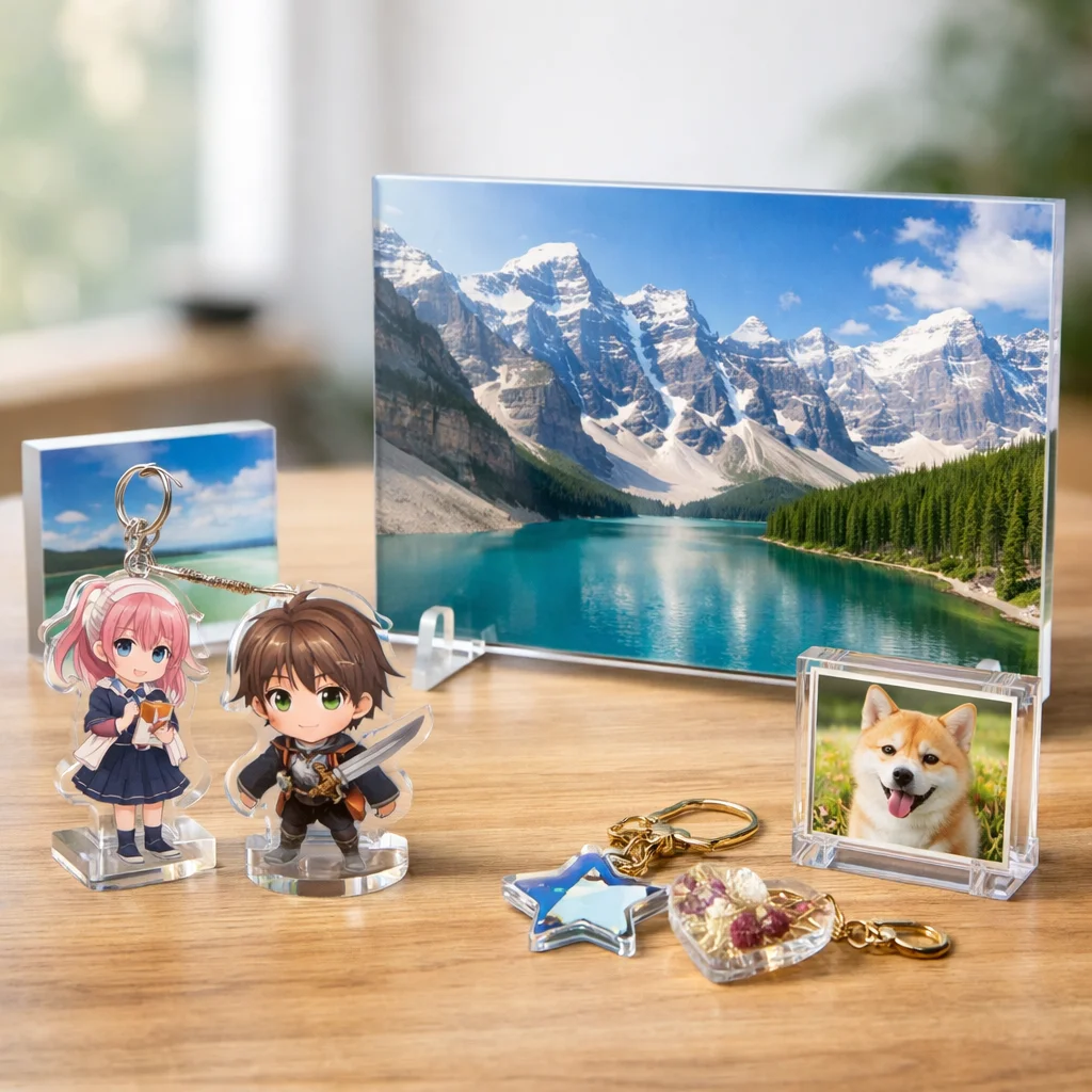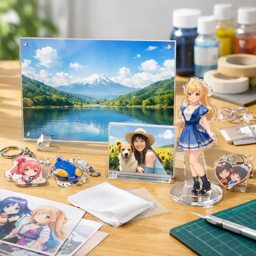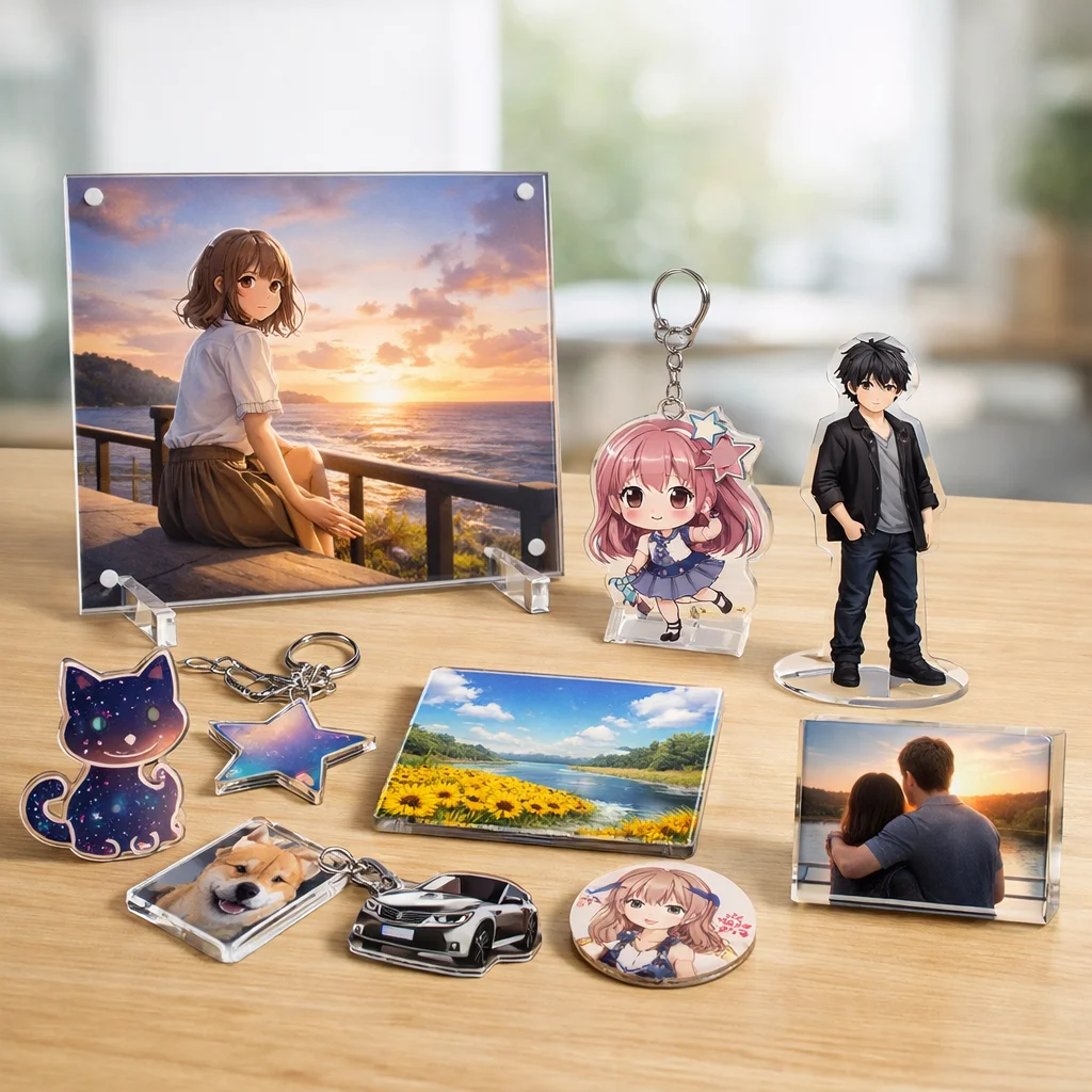 アクリルパネルは、その美しさと機能性から多くの人に愛されています。耐久性や印刷適性を活かして、おしゃれなインテリアやファンアイテムの制作が可能です。アクリルグッズの中でも特に魅力的な選択肢として、ぜひ取り入れてみてください。