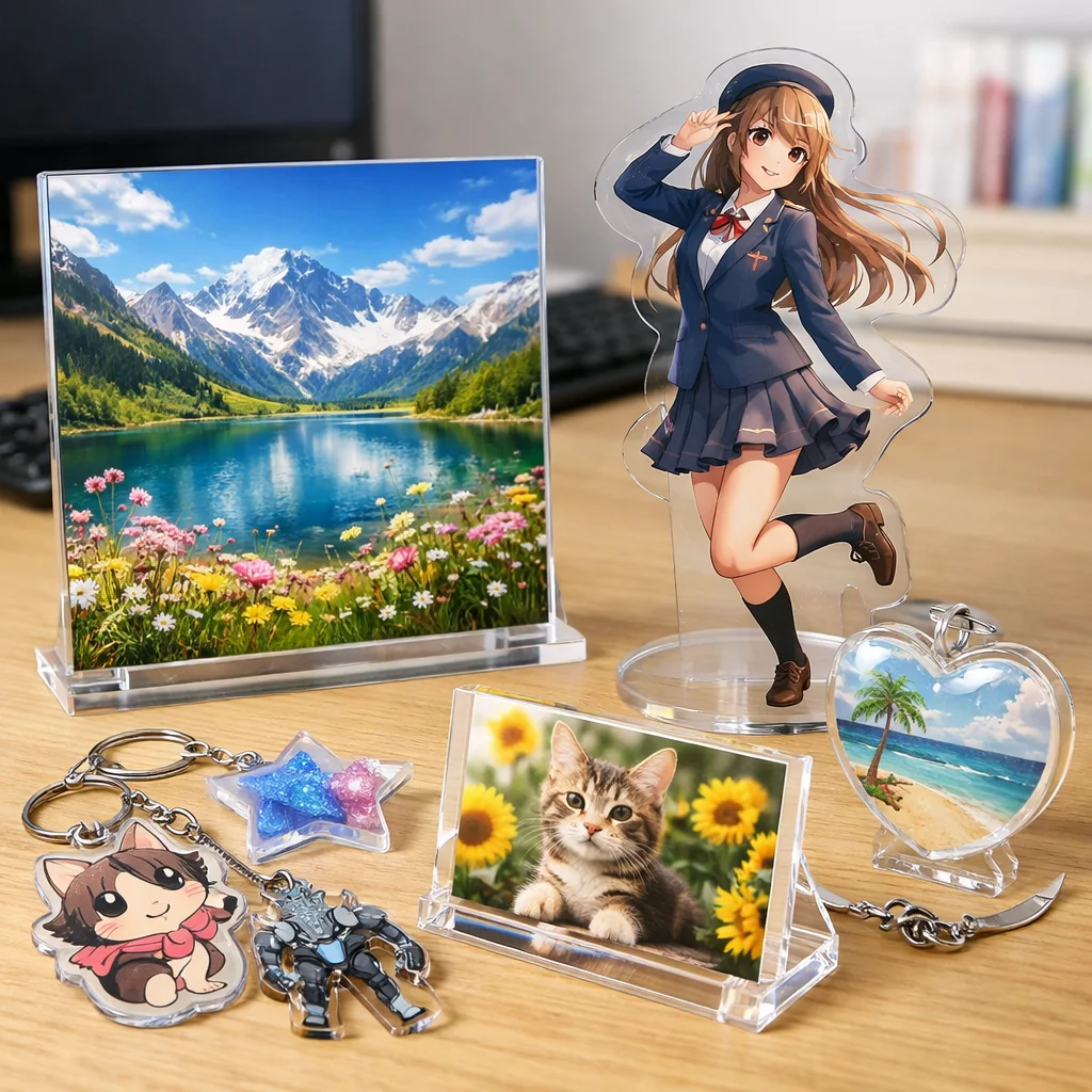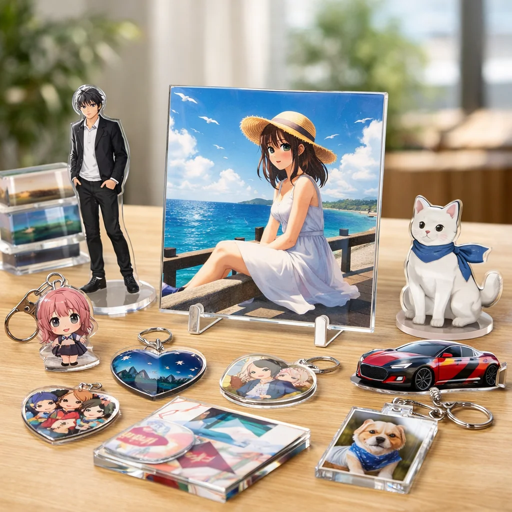 アクリルスタンドは特にアニメやゲームキャラクターの立体的な展示方法として人気があります。また、アクリルキーホルダーは手軽さから日常的に使われやすく、特にファンアイテムとして親しまれています。そして、アクリルブロックは卓上での使用に最適で、アクリルパネルの持つ美しさをそのまま体現しています。
