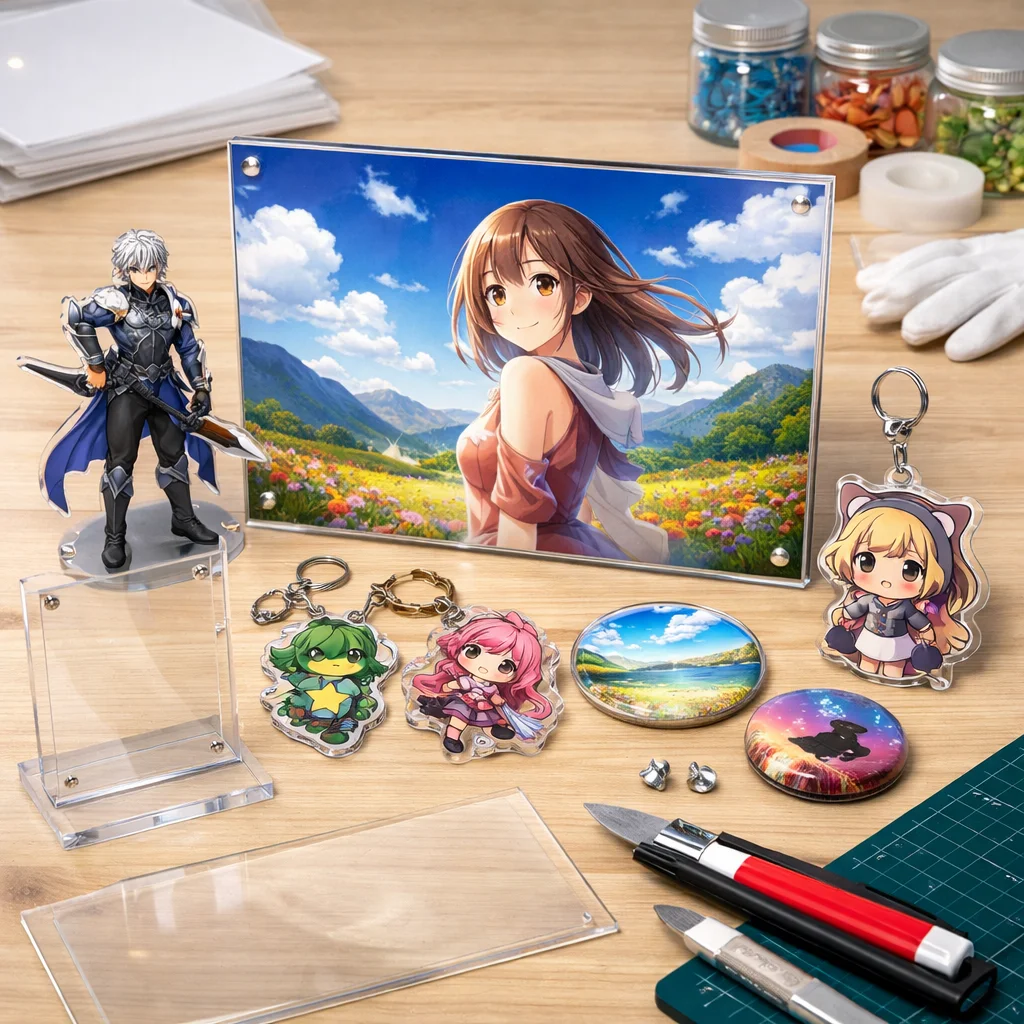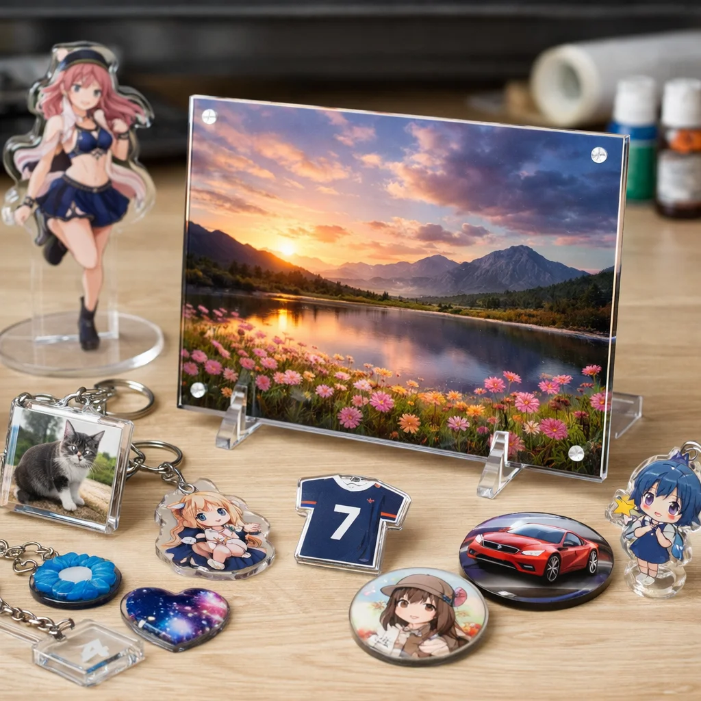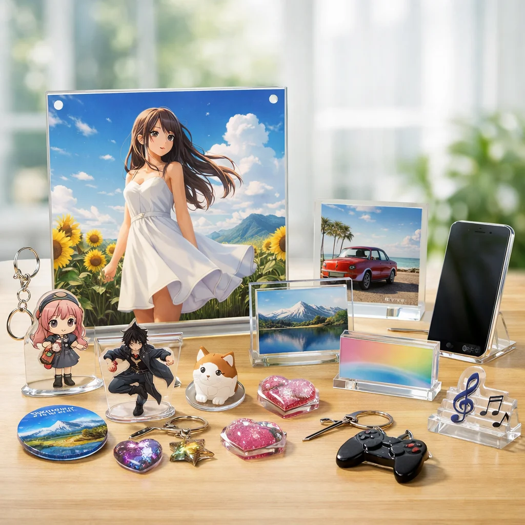 アクリルグッズは、その透明感と加工のしやすさから、多くの商品カテゴリで人気を集めています。特に、アクリルパネルはディスプレイや装飾に最適なアイテムとして、多くのシーンで活躍しています。