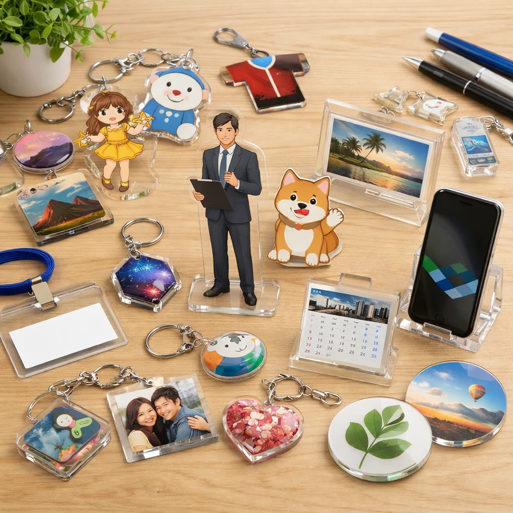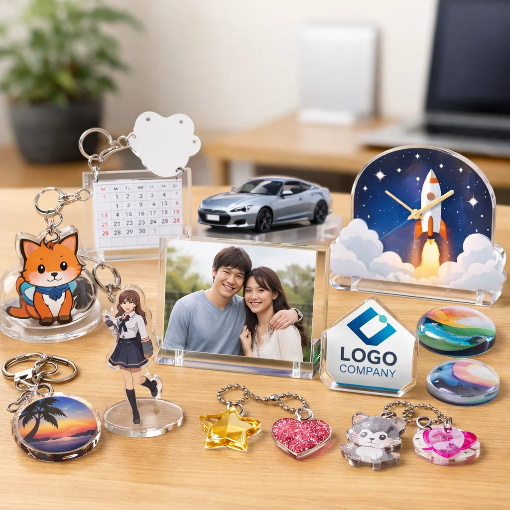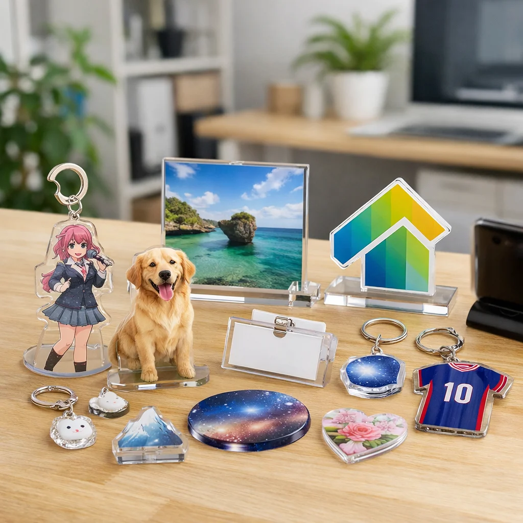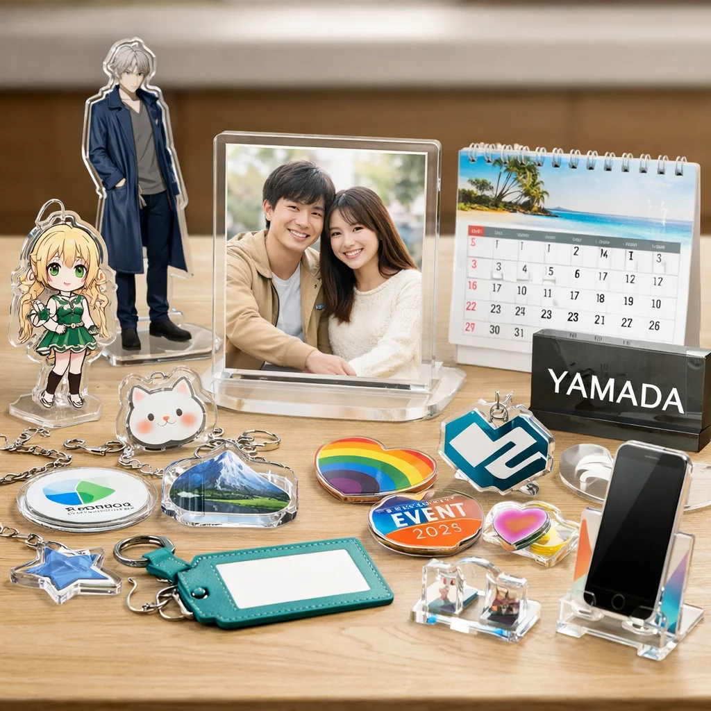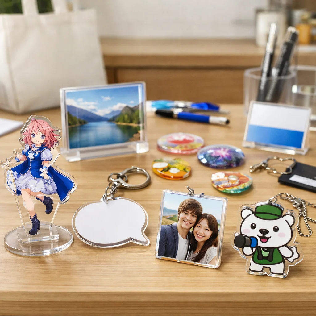 アクリルグッズがノベルティに向く背景を考えると、その特徴として軽量性、透明感、優れた印刷再現性、さらには小ロット対応が挙げられます。これらの要素は、企業の販促活動やイベントでの配布物として非常に適しています。商品カテゴリとしても、アクリルグッズは多様な用途に対応できるため、様々なニーズに応えることが可能です。