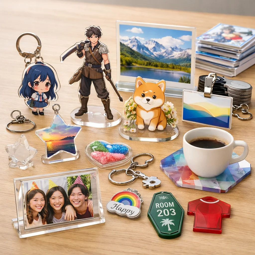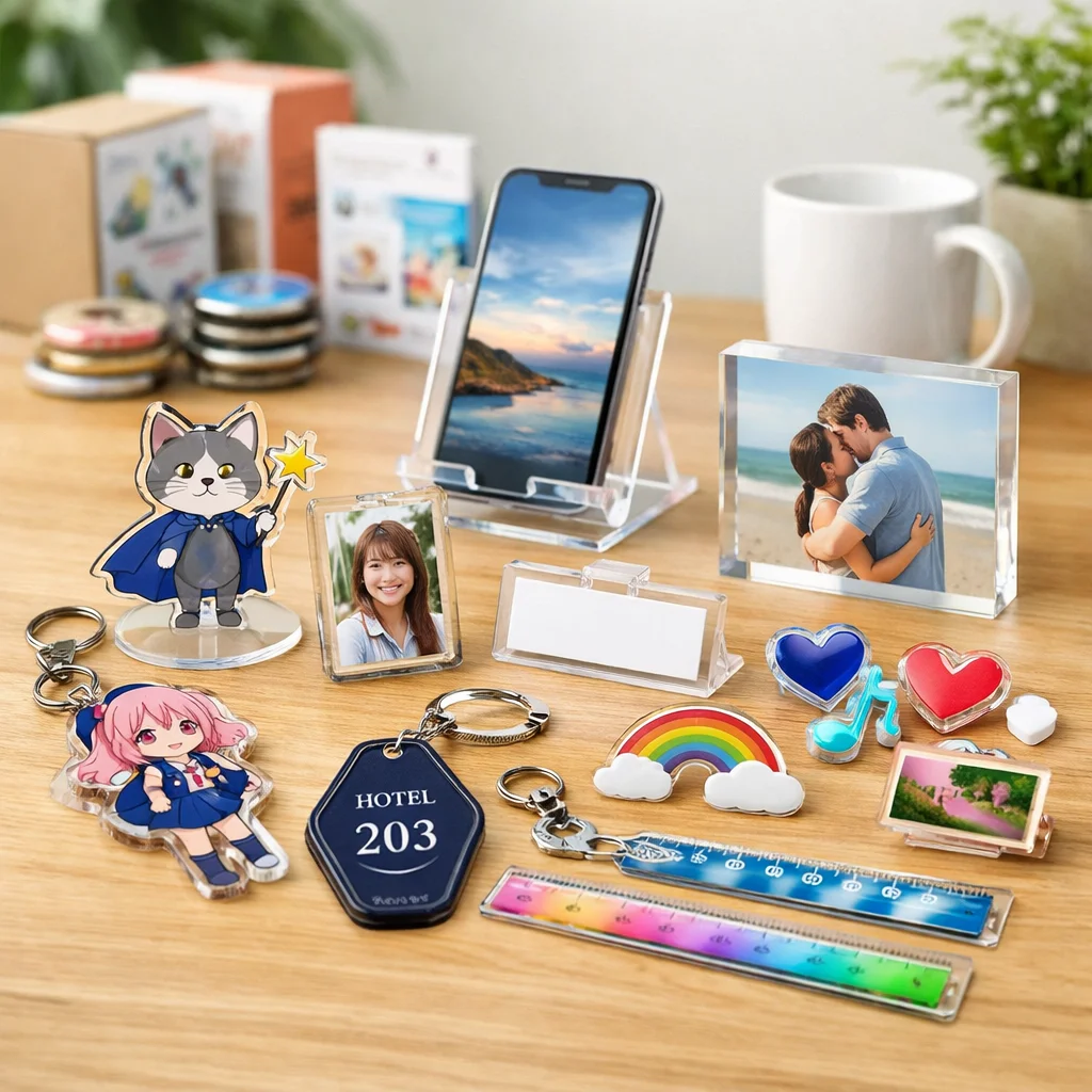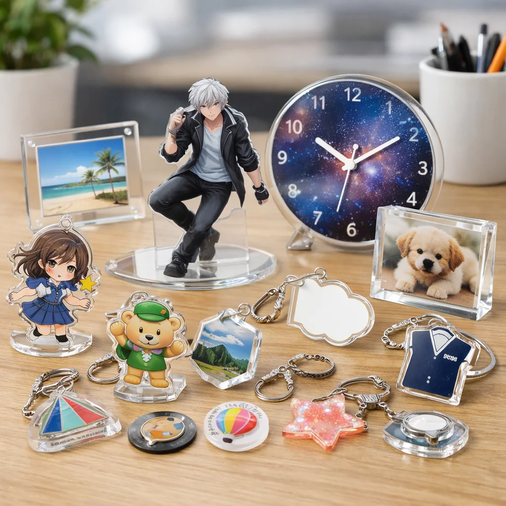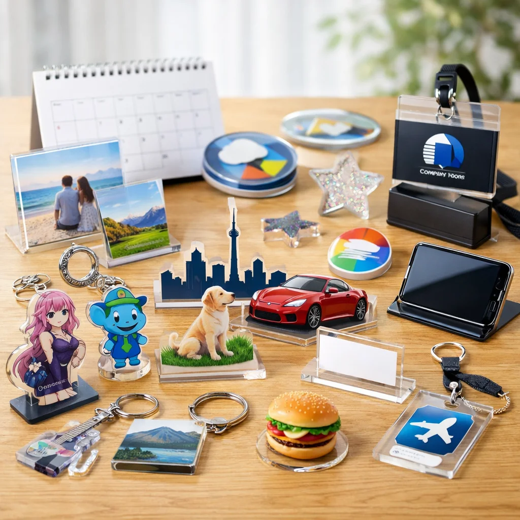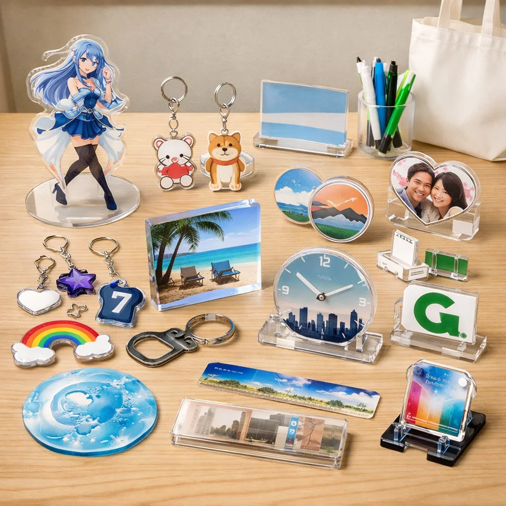 アクリルグッズがノベルティに向く背景を考えると、その特徴として軽量性、透明感、優れた印刷再現性、さらには小ロット対応が挙げられます。これらの要素は、企業の販促活動やイベントでの配布物として非常に適しています。商品カテゴリとしても、アクリルグッズは多様な用途に対応できるため、様々なニーズに応えることが可能です。